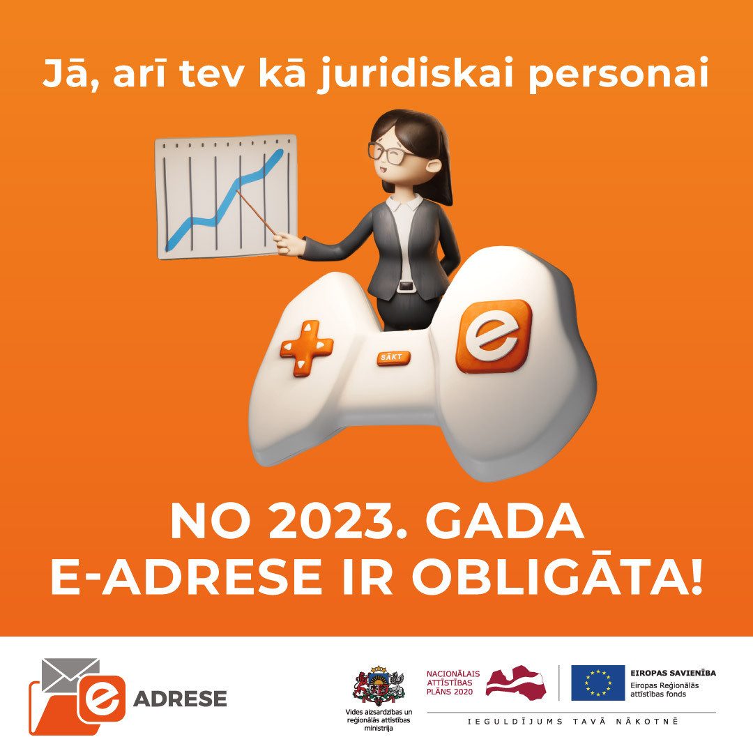 Oficiālā elektroniskā adrese jeb e-adrese no 2023. gada 1. janvāra būs obligāta visām juridiskajām personām –uzņēmumiem, biedrībām, nodibinājumiem, arodbiedrībām un citiem reģistros reģistrētiem tiesību subjektiem Latvijā. E-adrese ir drošas saziņas pakalpojums – uzņēmuma digitālā pastkastīte, kuru juridiskas personas var izveidot divos veidos – portālā Latvija.lv vai integrējot risinājumu sava uzņēmuma dokumentu vadības sistēmā, atgādina Vides aizsardzības un reģionālās attīstības ministrija (VARAM) programmas “Dari digitāli “ ietvaros un aicina neatlikt e-adreses izveidi uz pēdējo brīdi.