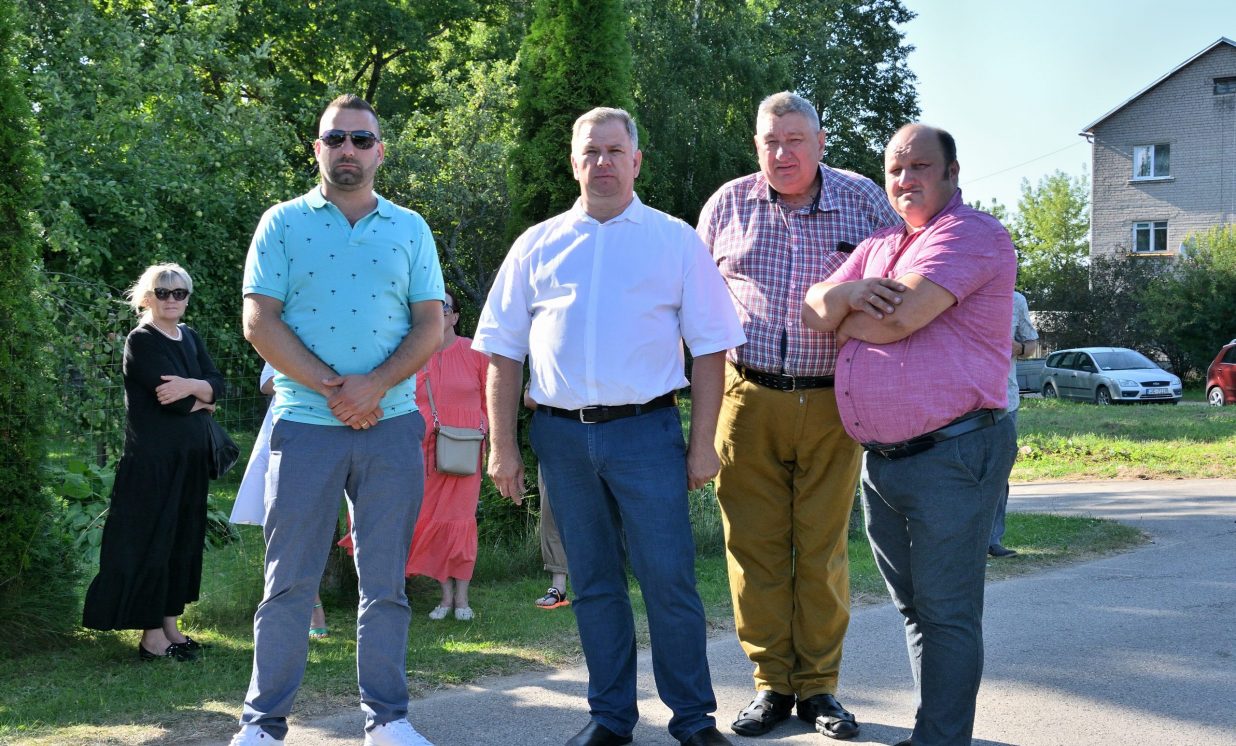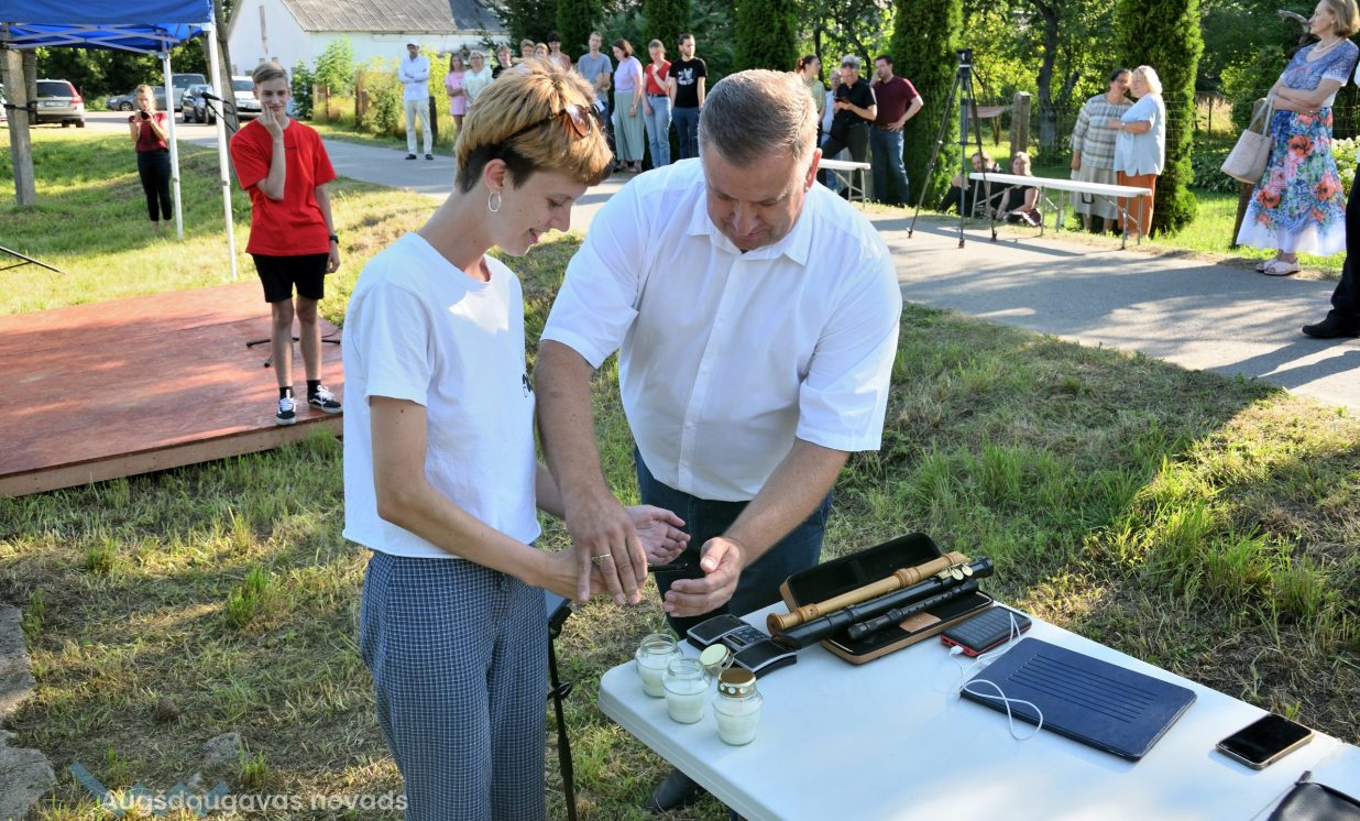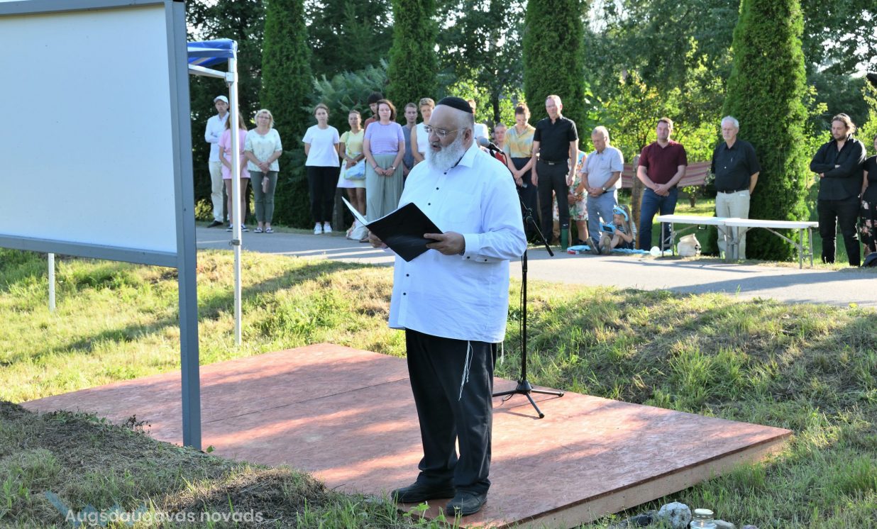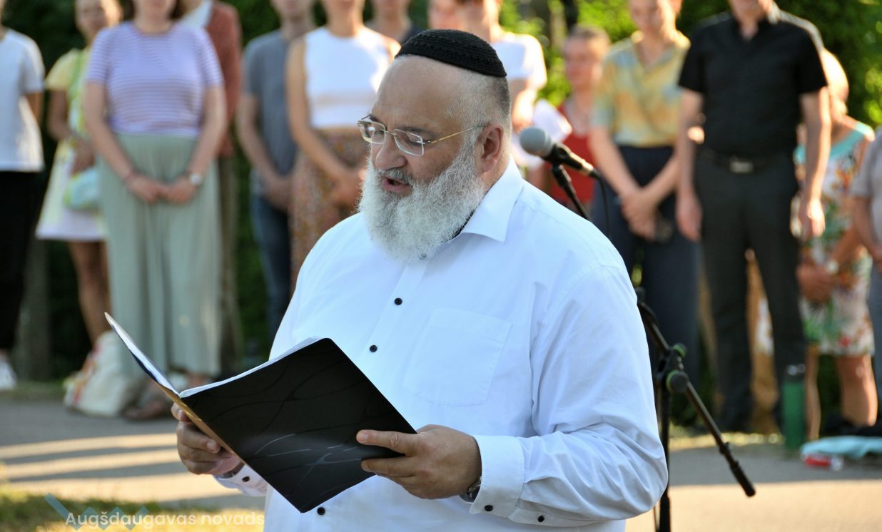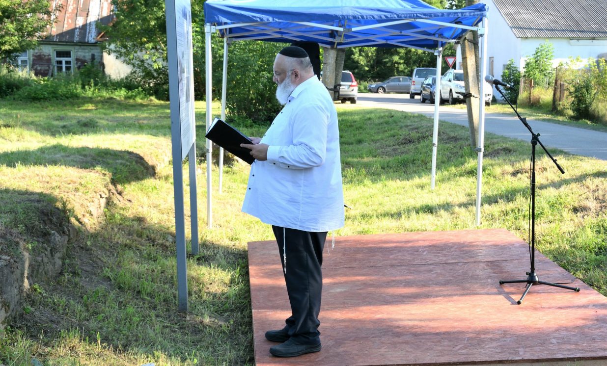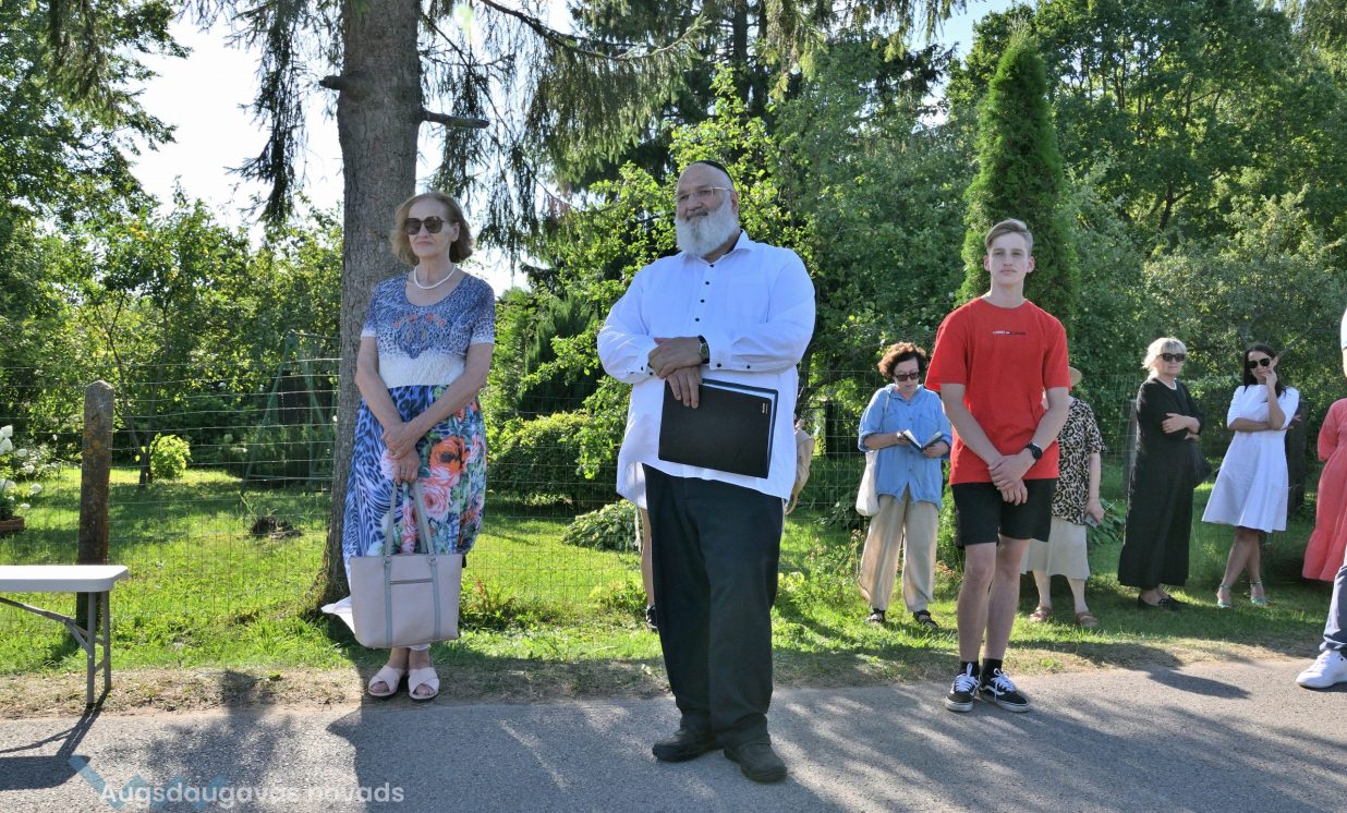 Višķu pagasta pārvaldes vadītājs Jānis Proms kopā ar Baruhu Čauskinu, Vācijas pārstāvjiem un jauniešiem nolika piemiņas sveci pie bijušās sinagogas pamatiem.