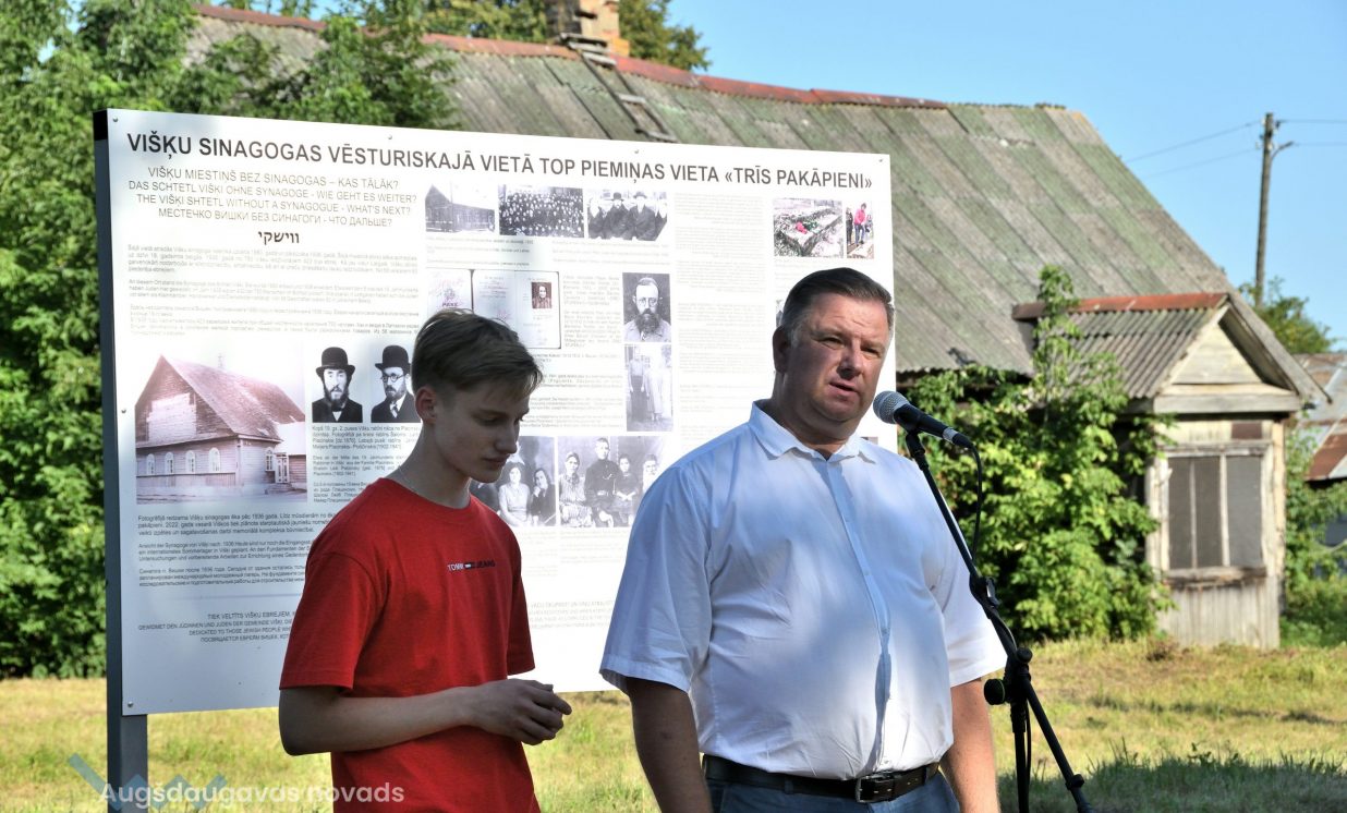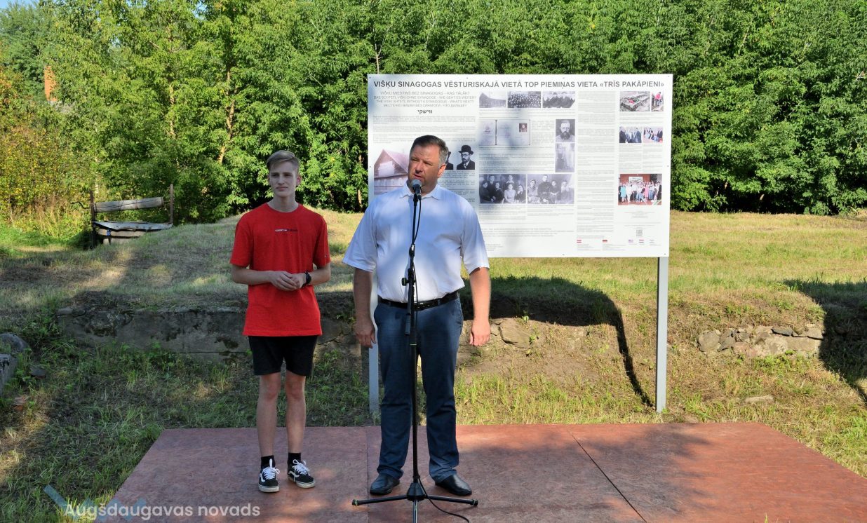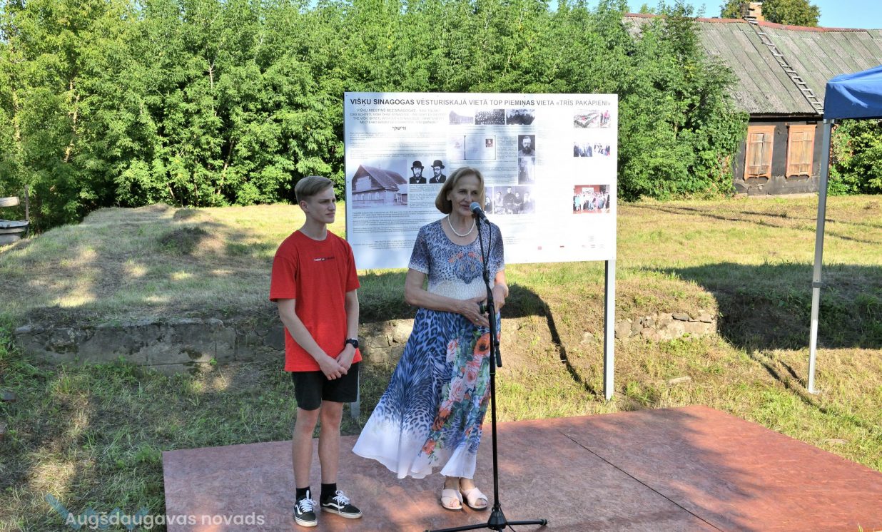 Augšdaugavas novada pašvaldības vārdā Kultūras pārvaldes vadītāja Ināra Mukāne izteica pateicību Vācijas pusei un biedrībai “Drei Stuffen” par ebreju kultūras pagājušā gadsimta 40. gadu smagās vēstures saglabāšanu. Tieši biedrība “Trīs pakāpieni” organizēja jauniešu arheoloģiskās izpētes nometni Višķos, kurā profesionālā Latvijas arheologa vadībā sinagogas vēsturiskajā vietā tiks veikti jauni atklājumi. “Domāju, ka sadarbojoties visiem kopā, biedrībām un pašvaldībām, kā arī labas gribas cilvēkiem, var paveikt daudz laba,” uzrunājot klātesošos, pauda I. Mukāne.