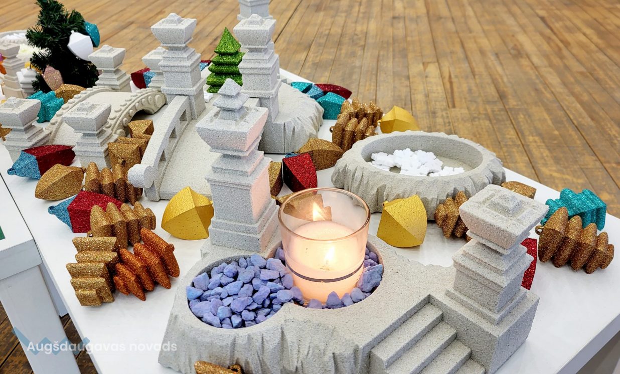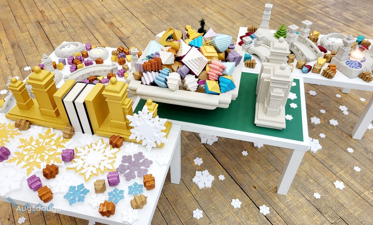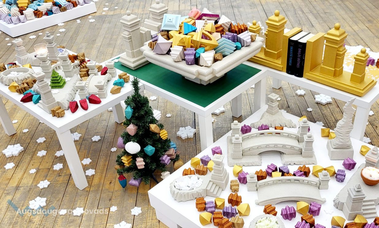 Izstādes apmeklētāji varēji apskatīt vairāk nekā 50 eglīšu rotājumu veidus: gan sagatavju veidā, gan krāsotas vai pārklātas ar kvarca smiltīm vai arī spīguļiem. Blakus dekoriem, ko kārt eglītes zaros, izvietoti arī telpu dekori: sapņu smilšu pulkstenis, tiltiņi un tornīši.