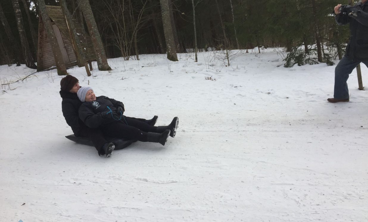 Cik burvīga diena, 14. februāris! Mēs, Sventes pagasta seniori, šo dienu pavadījām vienā no Sēlijas skaistākajām vietām – Egļukalnā, kas atrodas mūsu dzimtajā Sventes pagastā. Sekojot tradīcijai, mēs cenšamies būt kopā visos svētkos – dzimšanas dienās, gadskārtu svētkos, šoreiz – arī Sv. Valentīna dienā. Mūs priecēja burvīgi, ziemīgi laikapstākļi, diena bija saulaina. Vēlos nedaudz pastāstīt par vienu no mūsu pagasta populārākajām apskates vietām – Egļukalnu. Jau pats nosaukums stāsta par to, ka to ieskauj skujkoku mežs. Kalna augstums sastāda 220 metrus, agrāk te tika uzsliets skatu tornis, kas vēlāk tika nojaukts, taču ceram, ka kādreiz AS “Latvijas valsts meži” šo skatu torni atjaunos un mēs atkal no tā varēsim vērot mūsu skaisto apkārtni. No šī torņa kādreiz varēja saredzēt Sventes ezeru un teritoriju līdz pat Ignalinas atomelektrostacijas torņiem Lietuvā. Ziemā šeit darbojas slēpošanas bāze. Par cik slēpes mums, senioriem, ir nedaudz par ekstrēmām, mēs visi kopā draudzīgi braucām no sniegotajiem kalniem uz polietilēna maisiem. Tik lielu sajūsmu no tāda veida atpūtas mēs nebijām piedzīvojuši jau sen! Paldies organizatoriem – Sociālajam dienestam un Sventes pagasta pārvaldes vadībai. Visus, kas vēlas – bērnus un pieaugušos, aicinām ciemos uz mūsu Egļukalnu.