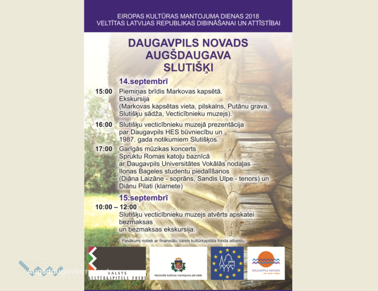 15.00 piemiņas brīdis Markovas kapsētā. Ekskursija (Markovas kapsētas vieta, pilskalns, Putānu grava, Slutišķu sādža, Vecticībnieku muzejs). 16.00 Slutišķu vecticībnieku muzejā prezentācija par Daugavpils HES būvniecību un 1987. gada notikumiem Slutišķos. 17.00 Garīgās mūzikas koncerts Spruktu Romas katoļu baznīcā ar Daugavpils Universitātes Vokālās nodaļas Ilonas Bageles studentu piedalīšanos (Diāna Laizāne – soprāns, Sandis Ulpe-Tenors) un klarnetisti Diānu Pilati.