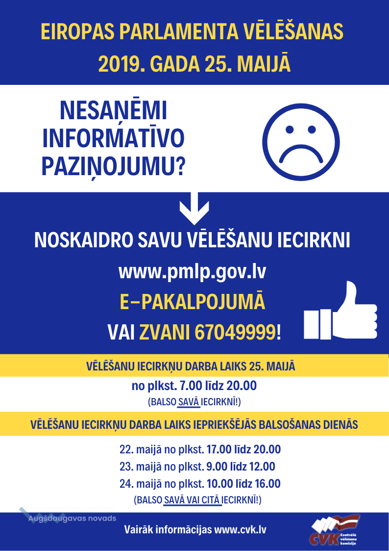 22. - 24. maijs: IEPRIEKŠĒJĀ BALSOŠANA! Trīs dienas pirms vēlēšanām vari balsot JEBKURĀ vēlēšanu iecirknī Latvijā! Līdzi jāņem pase vai personas apliecība.