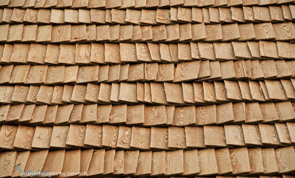 Šķūnim ieklāts jauns skaidu jumts veca šīfera vietā. Katrs dēlis tika sanumurēts, lai pēc tā noņemšanas un restaurācijas atgrieztos savā vietā. Dažas detaļas atjaunot veda uz darbnīcām, taču lielākoties visi darbi tika veikti uz vietas.