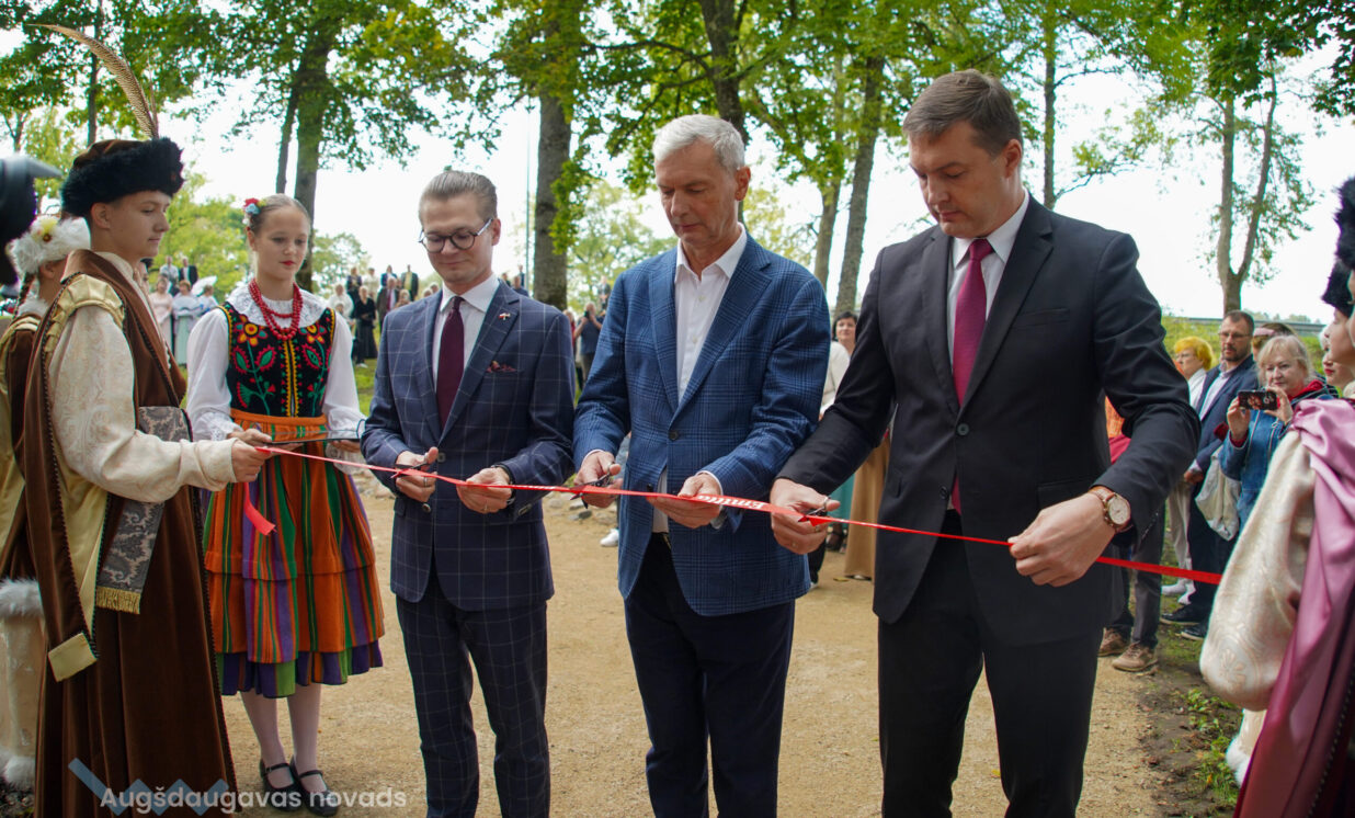 Augšdaugavas novada pašvaldības domes priekšsēdētājs Vitālijs Aizbalts uzsvēra, ka poļiem Augšdaugavas novadā ir īpaša vieta, jo poļi ir visaktīvākie, redzamākie un nopietnākie: “Es domāju, ka gandrīz katra ģimene novadā vairāk vai mazāk ir saistīta ar poļiem. Arī man viena ceturtā daļa ir poļu asinis, jo vecāmāte bija pane Šadurska. Šodien liels prieks, ka neesam aizmirsuši Emīliju Plāteri, atceramies vēsturi un mēs glabājam šo piemiņu, un to glabās arī nākamās paaudzes. Prieks, ka arī Augšdaugavas novada pašvaldība ņēma dalību, lai šī taka izskatītos tāda un lai šeit vienmēr būtu gan poļu, gan latviešu tūristi. Gribu pateikt lielu paldies Latvijas Poļu Savienībai, Polijas valdībai un arī līksniešiem. Gribu novēlēt, lai te vienmēr skan bērnu čalas, lai cilvēki nāk un atceras pagātni un mīl tagadni.”