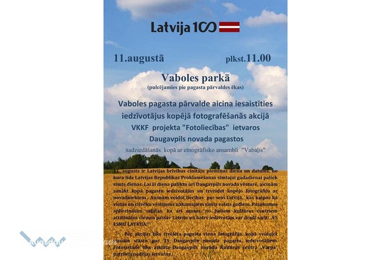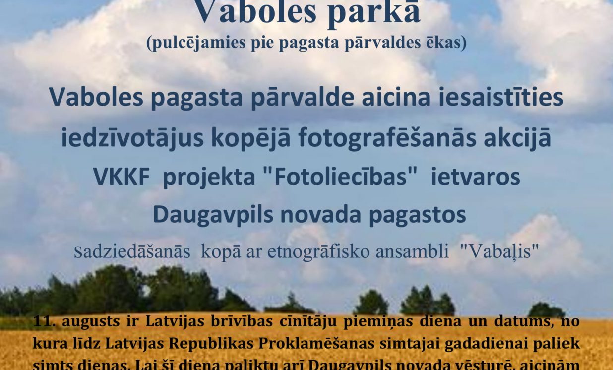 Vaboles pagasta pārvalde aicina iedzīvotājus 11. augustā plkst. 11.00 iesaistīties kopējā fotografēšanas akcijā.