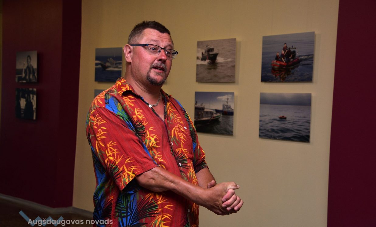 Pateicoties fotostudijas "Ezerzeme-F" vadītāja Linarda Onzula draudzībai ar fotogrāfiju autoru, izstāde atceļojusi uz Latgali, kur sākotnēji atradās Valsts Robežsardzes koledžā Rēzeknē, bet nu ir nonākusi Naujenes Kultūras centrā. Linards Onzuls uzsvēra, ka izstādes apmeklētajiem ir iespēja redzēt ne tikai jūru, kas atrodas tālu no mums, bet arī visai retus kadrus, kas ikdienā nevienam nav pieejami. Šo izstādi varēs aplūkot līdz 3. augustam.