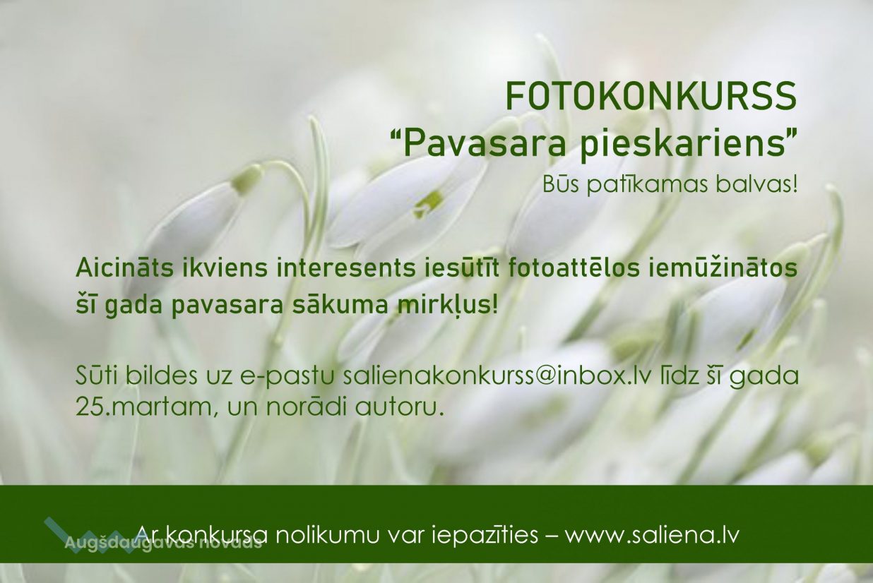 Bildes sūtīt uz e - pastu salienakonkurss@inbox.lv līdz 25. martam ar norādi uz autoru.