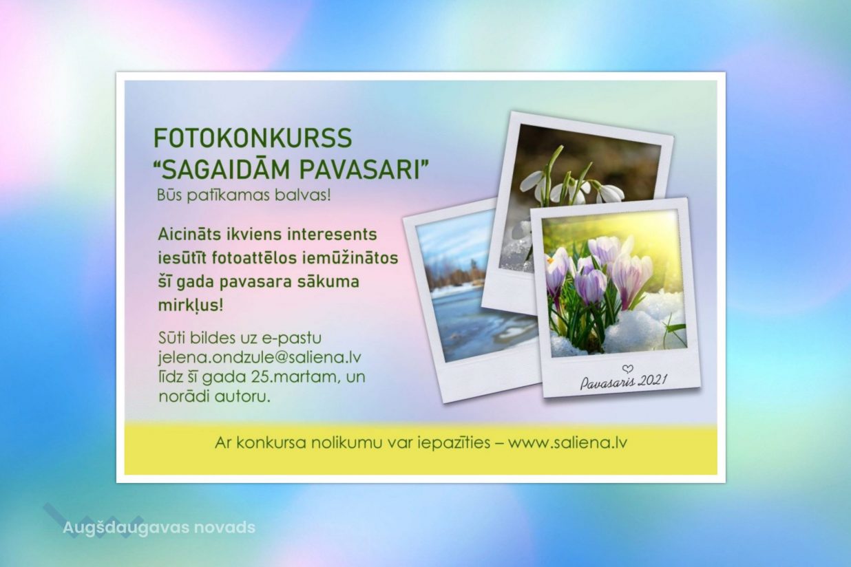 Salienas pagasta pārvalde aicina fotogrāfijas entuziastus un jebkuru interesentu piedalīties fotokonkursā “Sagaidām pavasari” un iemūžināt šā gada pavasara atnākšanu.