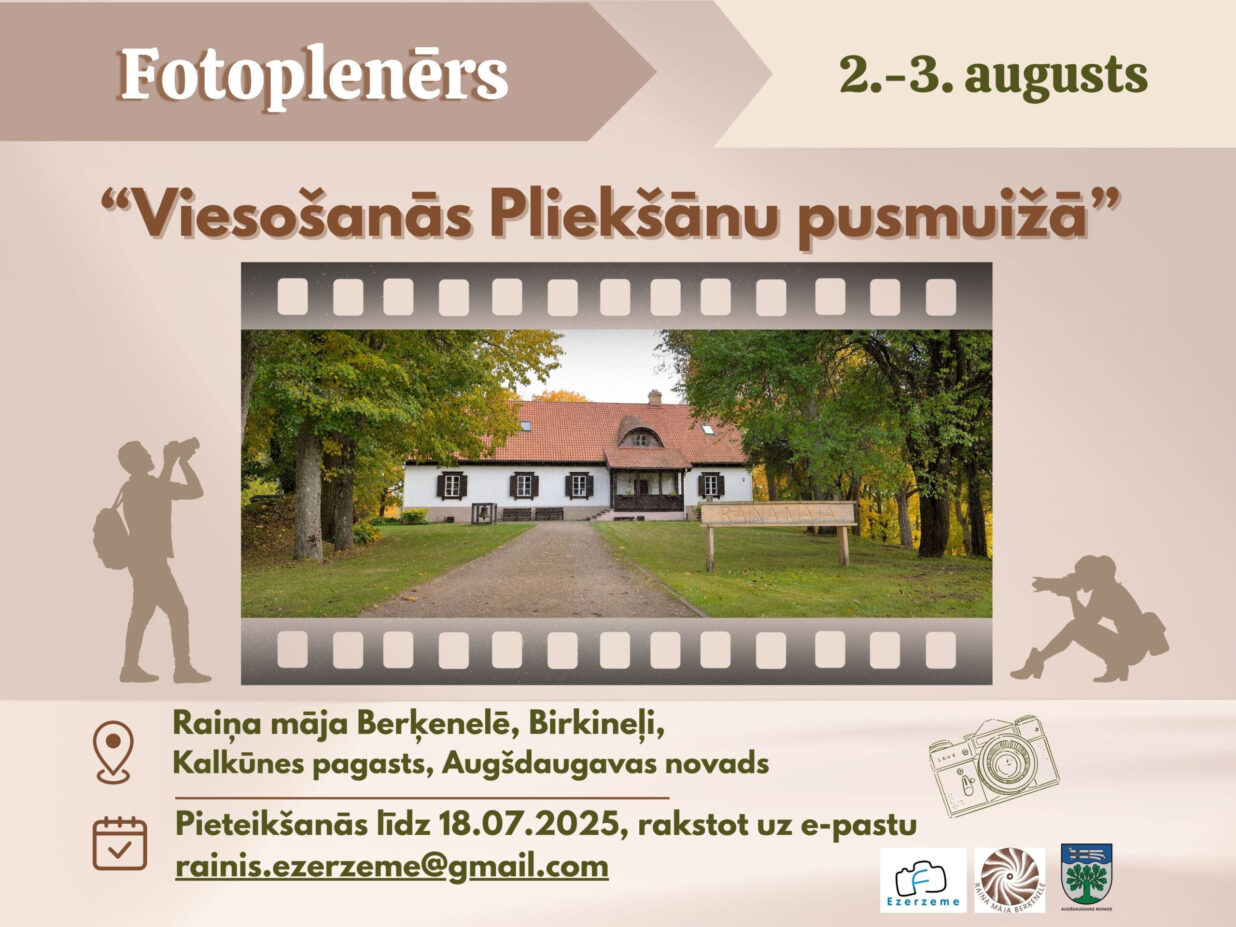 2. un 3. augustā Raiņa mājā Berķenelē Augšdaugavas novadā norisināsies radošs fotoplenērs “Viesošanās Pliekšānu pusmuižā”, aicinot fotogrāfus no visas Latvijas viesoties Raiņa bērnības rezidencē, iepazīt vietējās kultūras kolorītu, smelties citu fotogrāfu pieredzi un tvert skaistus foto mirkļus.