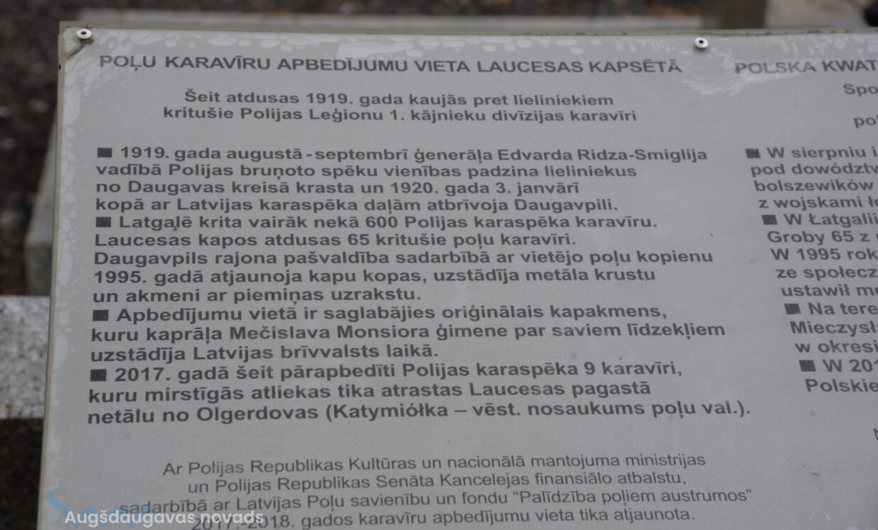 26. augustā Laucesas kapos poļu karavīru atdusas vietā tika atklāta memoriālā stēla, kas veltīta cīņu biedriem – Polijas armijas 1. tanku pulka franču un poļu karavīru piemiņai 1919. gada 27.-28. septembrī kaujā pie Daugavpils.