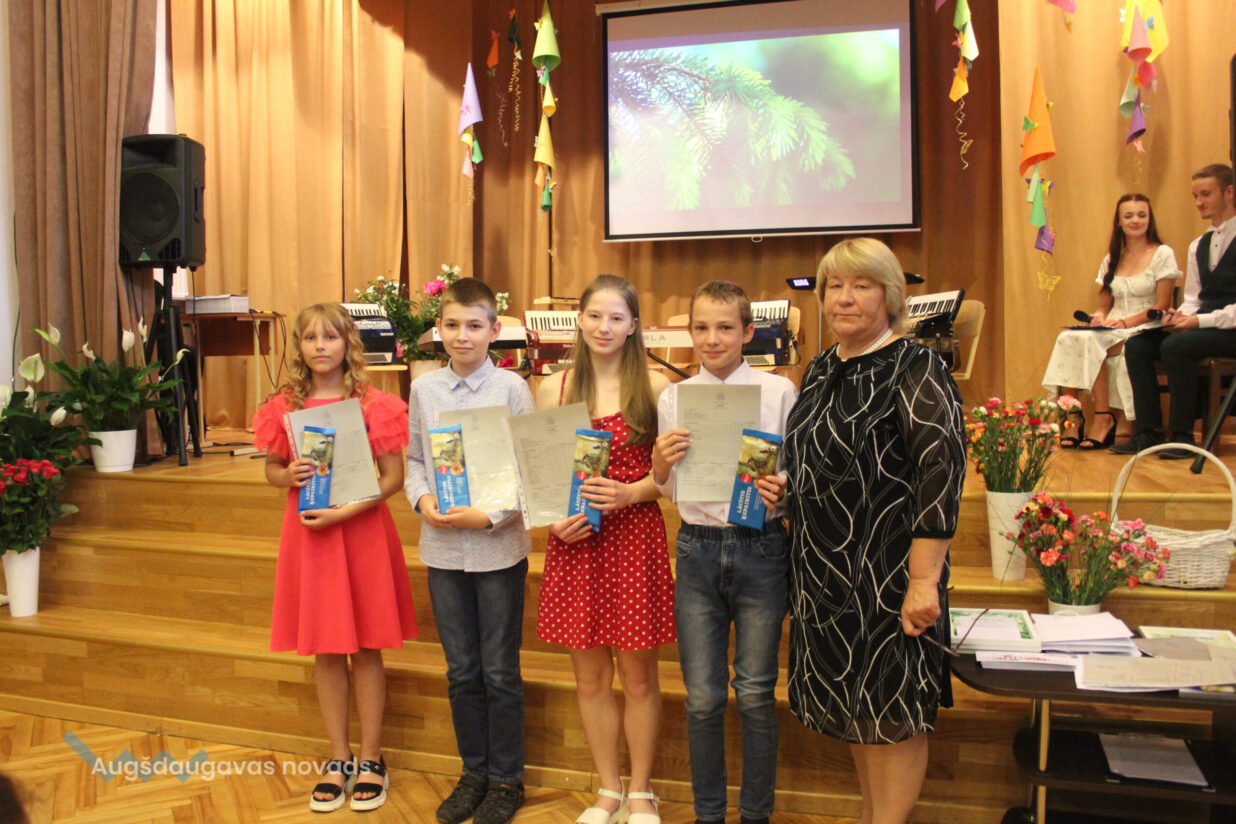 Labākie skolēni katrā klašu grupā saņēma zelta un sudraba liecības. 1.-4.klašu grupā tās saņēma 1.klases skolnieki Emīlija Matusjaviča un Artūrs Vakaļuks, 2.klases skolēns Artjoms Gorkins, 3.klases skolēni Vladislavs Daņilovs, Amirhans Zaripovs un Vladislavs Nemiro un 4.klases skolniece Elīna Desjatkova saņēma Zelta liecību, bet Deivids Kukjans – sudraba. 5.-9.klašu grupā par sudraba liecību īpašniekiem kļuva 5.klases skolnieki Kirills Putro un Viktorija Saveļjeva, 6.klases skolniece Zoja Solovjova, 7.klases skolēni Arnis Gasūns un Vladimirs Desjatkovs un 8.klases skolniece Anastasija Krivašejeva. 9.-12. klašu grupā sudraba liecības saņēma 10.klases skolnieki Vitālijs Jegorovs un Karalina Rižaja, 11.klasē – Elmārs Baiks, Karīna Zolnerčika un Laura Vaidere.