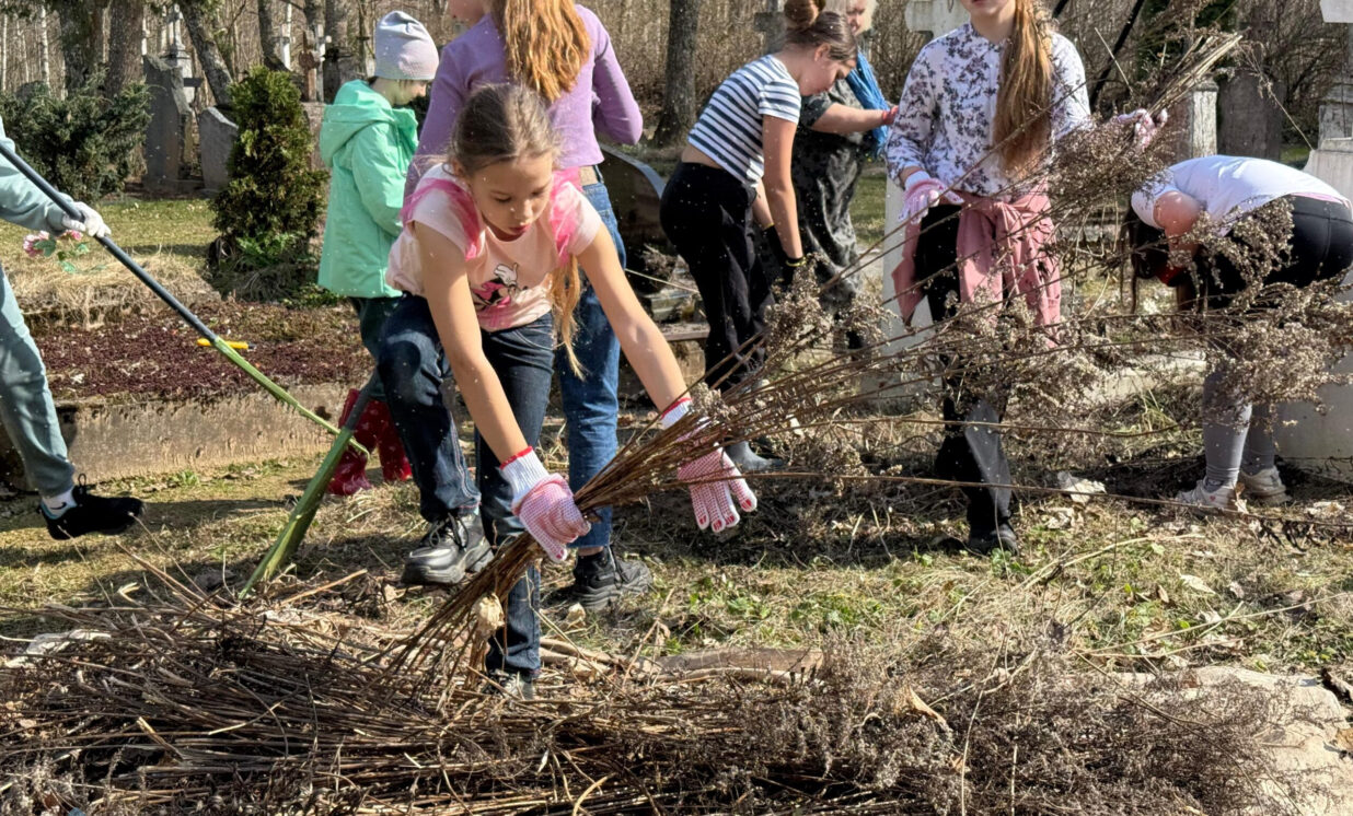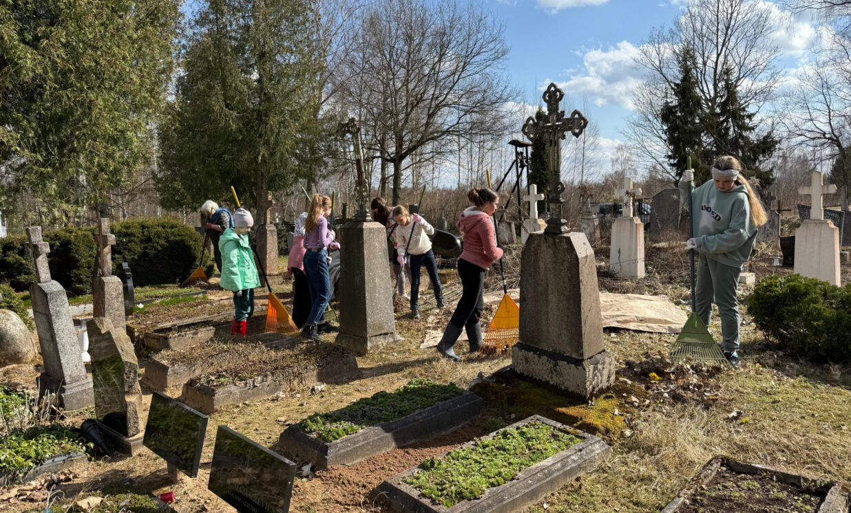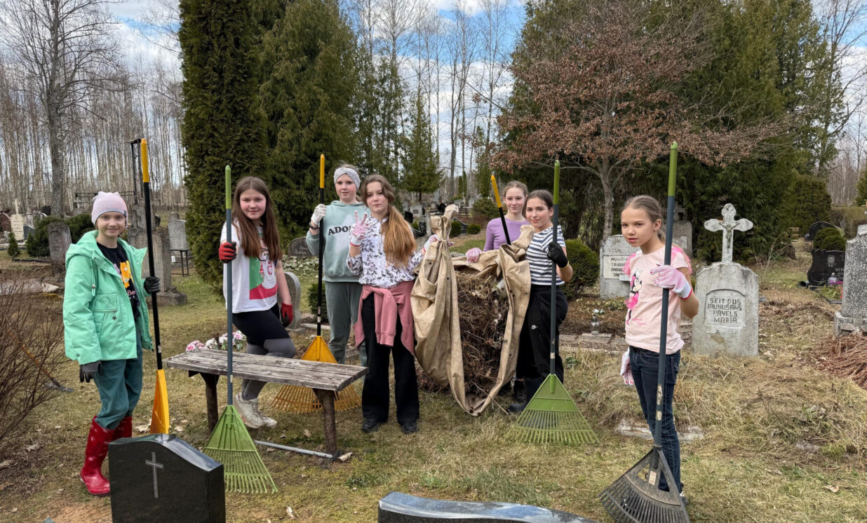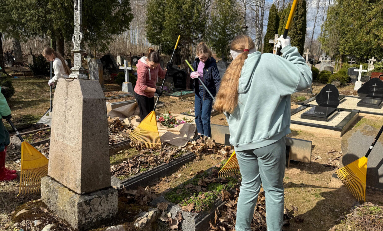 Meitenes grāba lapas un attīrīja kapu kopiņas no ziemas atstātajiem netīrumiem, lai tās būtu sakoptas. Darba gaitā viņas arī uzzināja vairāk par Skrindu dzimtu un citiem nozīmīgiem cilvēkiem, kuru atdusas vietas viņas sakopa.