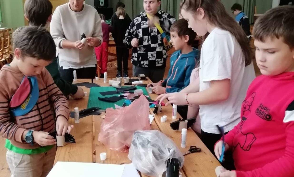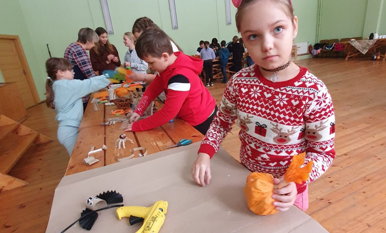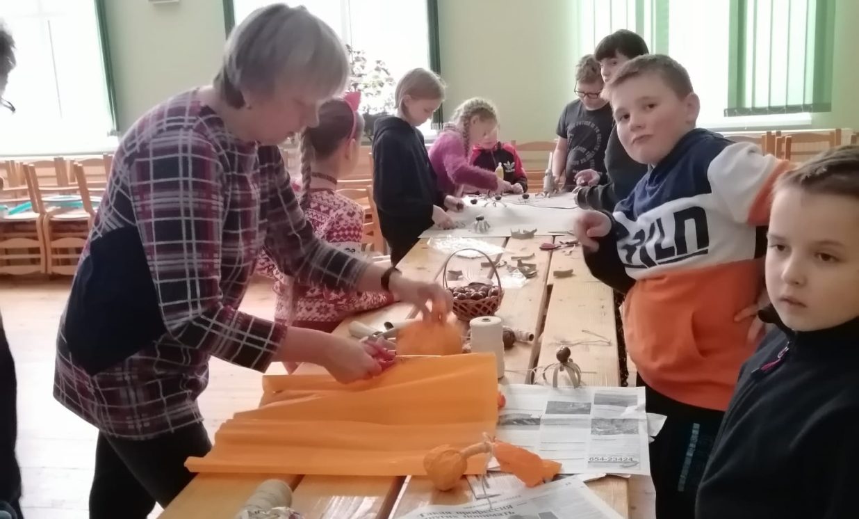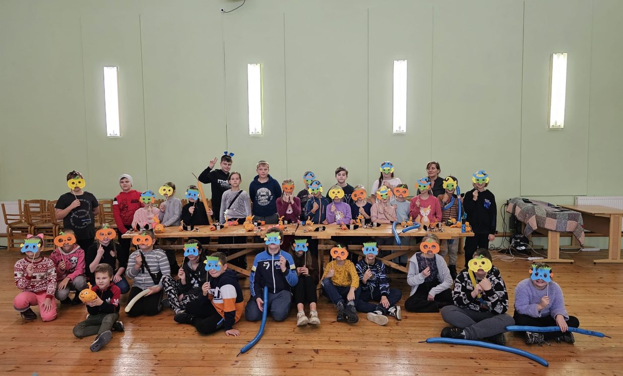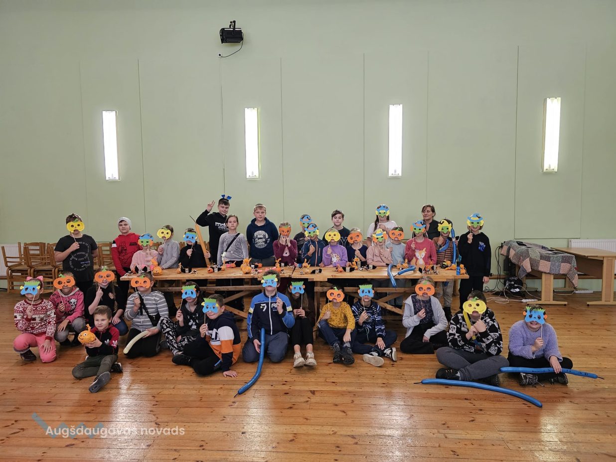 Ciemos ieradās kupls skaits bērnu no Daugavpils pilsētas Bērnu un jauniešu centra “Jaunība” (pulciņi “Tehniskā modelēšana” un “Veidošana”), lai padalītos ar savu pieredzi un iemācītos kaut ko jaunu. Arī vietējo bērnu atnāca daudz. Visi bērni tika sadalīti trīs grupās, kas draudzīgi komunicēja savās komandās. Medumu Tautas nama pārstāvji un BJC “Jaunība” skolotājas Anfisa Labute un Marina Bojarova piedāvāja bērniem dažādus dekorus no parastiem materiāliem. Radošajā darbnīcā katrs izgatavoja sev gan sikspārņus, gan ķirbjus, gan svētku maskas. Pēc darba visi atpūtas pie tējas galda ar cepumiem. Pasākums beidzās ar spēlēm un nopelnītajiem saldumiem.