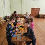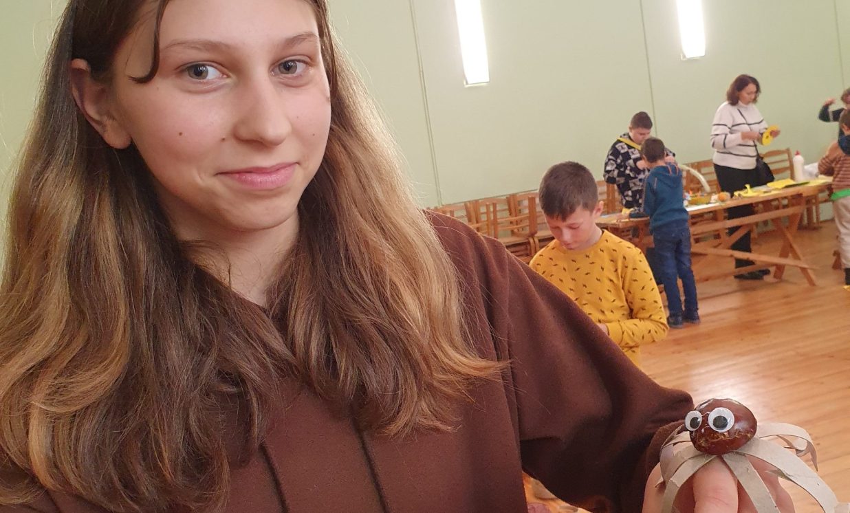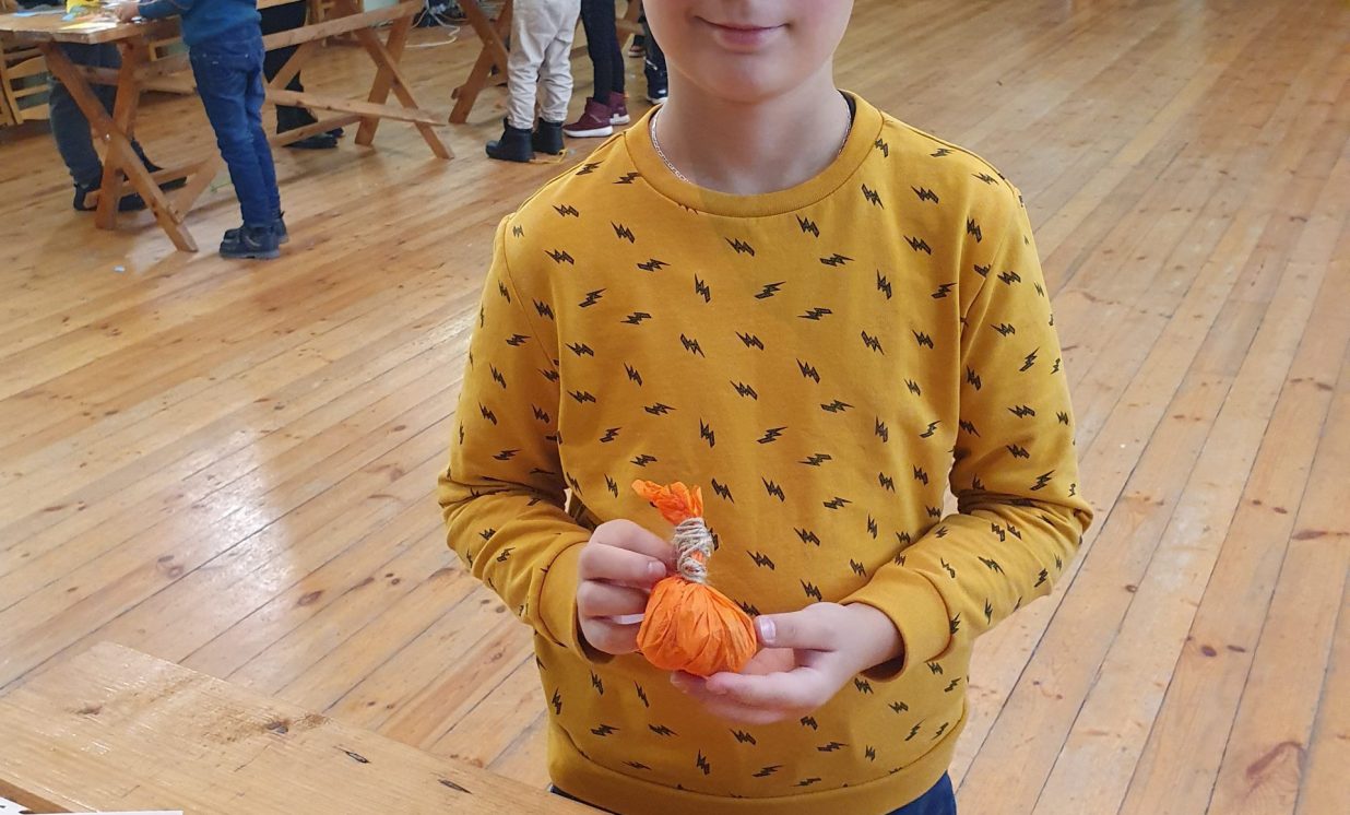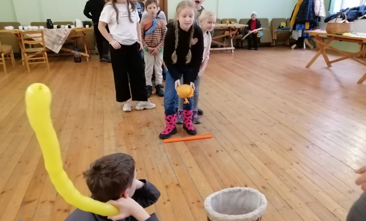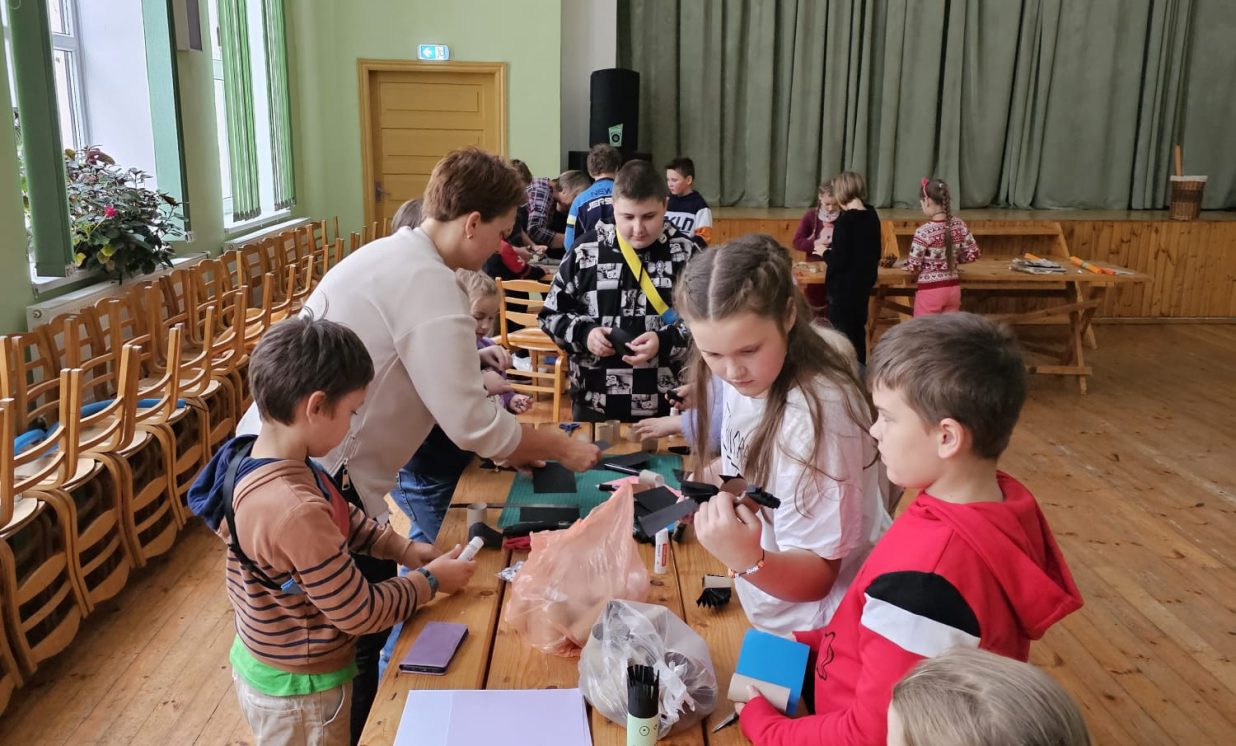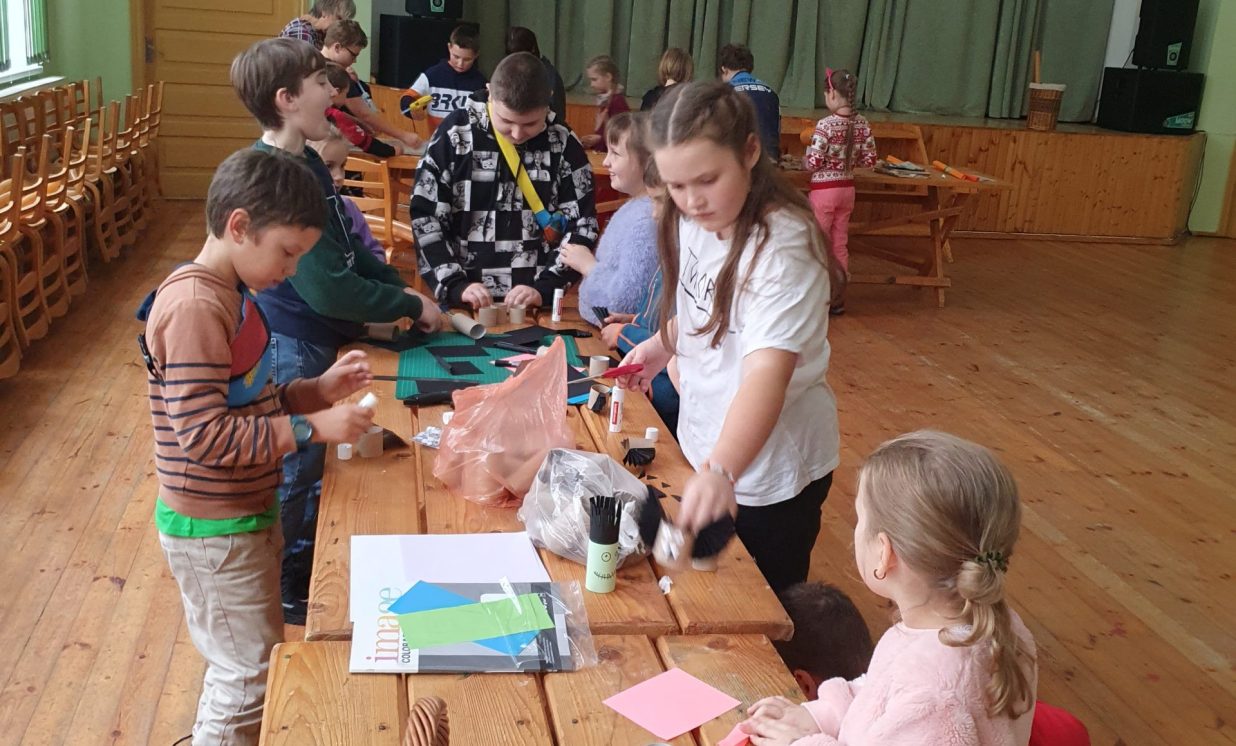 Ciemos ieradās kupls skaits bērnu no Daugavpils pilsētas Bērnu un jauniešu centra “Jaunība” (pulciņi “Tehniskā modelēšana” un “Veidošana”), lai padalītos ar savu pieredzi un iemācītos kaut ko jaunu. Arī vietējo bērnu atnāca daudz. Visi bērni tika sadalīti trīs grupās, kas draudzīgi komunicēja savās komandās. Medumu Tautas nama pārstāvji un BJC “Jaunība” skolotājas Anfisa Labute un Marina Bojarova piedāvāja bērniem dažādus dekorus no parastiem materiāliem. Radošajā darbnīcā katrs izgatavoja sev gan sikspārņus, gan ķirbjus, gan svētku maskas. Pēc darba visi atpūtas pie tējas galda ar cepumiem. Pasākums beidzās ar spēlēm un nopelnītajiem saldumiem.