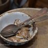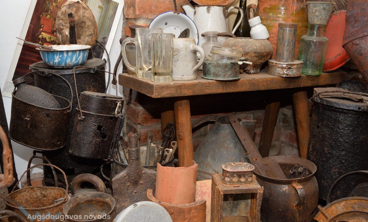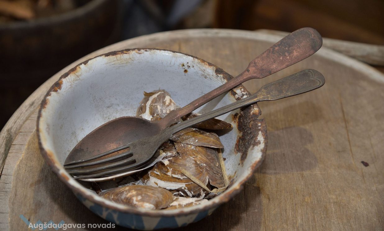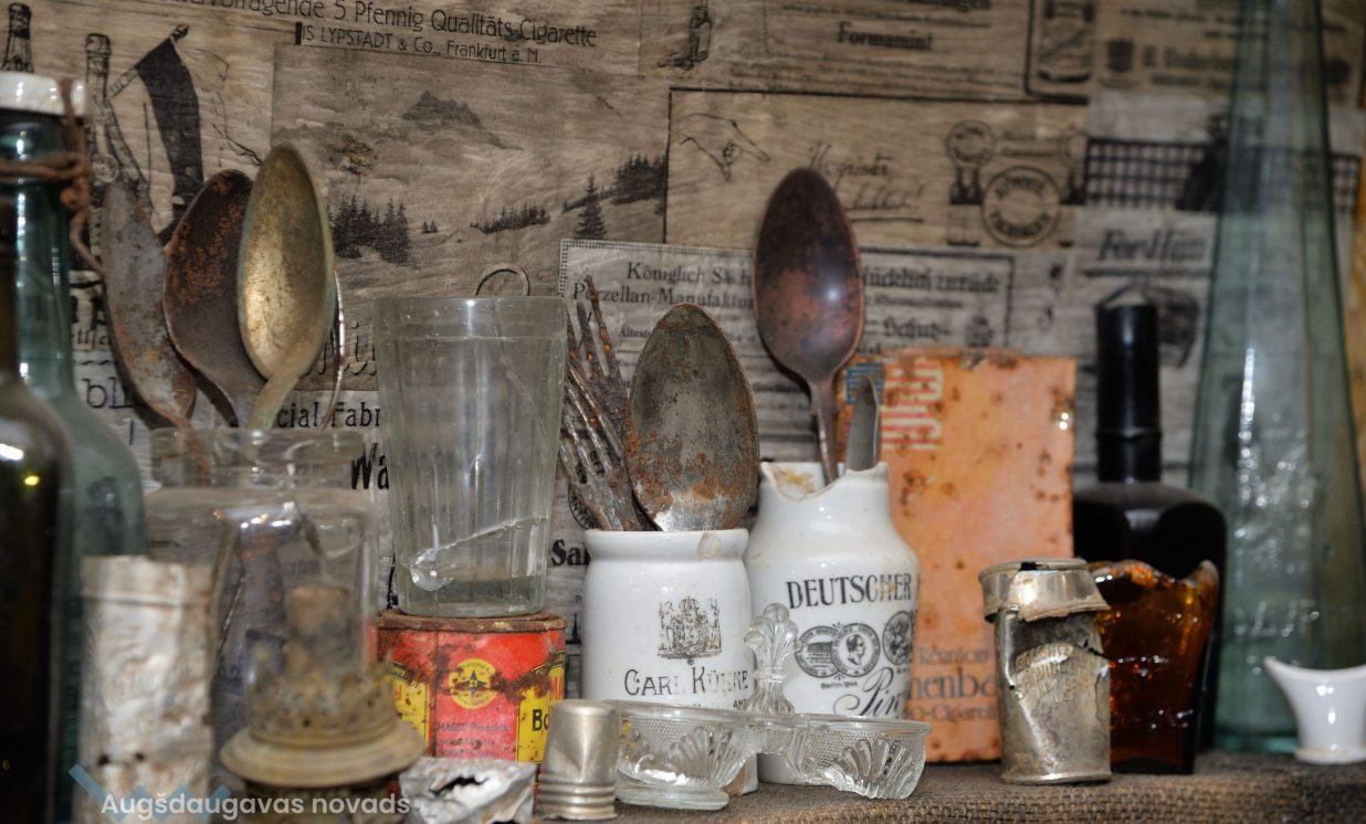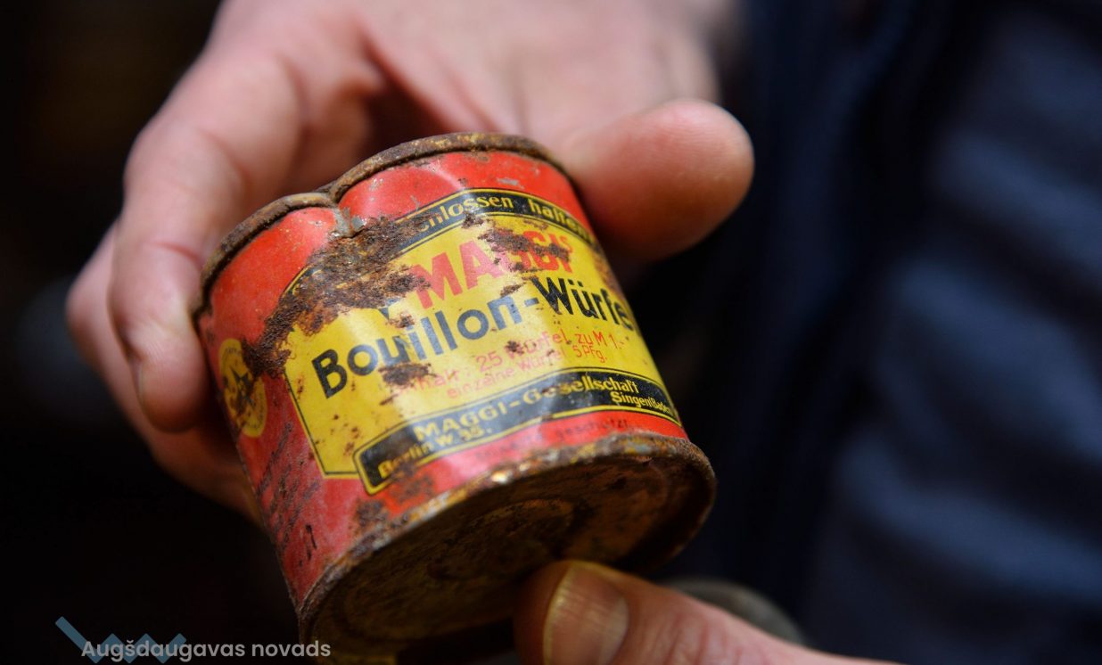 Jau tolaik vācieši lietojuši uzturā Maggi buljona pulveri, kas atradies metāla bundžās, bet mūsdienās to pazīstam kā buljona kubiciņus. Juris stāsta, ka slavenais vācu zīmols AEG kara laikā rotājis granātas, bet mūsdienās – sadzīves tehniku. “Daudzas lietas, kas ir manā kolekcijā, cilvēki no meža nenes, jo tirgū tām nav vērtības, piemēram, šie katliņi,” saka Juris un rāda izrūsējušus traukus, tostarp kādu metāla bļodiņu ar visām kareivja ēdiena paliekām – tukšām gliemju čaulām, turpat atrasti arī galda piederumi.