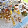 Kādreiz Gunta bija mācījusies puķkopību un agronomiju, bet vēlāk tika izietas apmācības, jo sākumā apjomīgu zināšanu par biškopību nebija. “Lai cilvēks varētu pilnvērtīgi sevi materiāli nodrošināt ar bišu saimniecību, nepieciešams turēt ap 100 bišu saimēm. Ja ģimenē ir divi cilvēki, tad jau 200, un tā tālāk. Bet mums ir tikai 25 bišu saimes,” teic saimniece. Produkcija tiek tirgota pārsvarā tirdziņos, piemēram Daugavpilī Rīgas ielas tirdziņā, novada dienās, kas bija visus iepriekšējos gadus. Produkciju pārdod arī vietējās produkcijas veikaliņā netālu no Špoģiem.