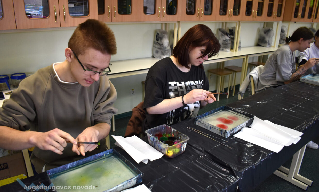 Protams, neiztika bez izaicinājumiem – sākumā daļa skolēnu bija bikli un baidījās kļūdīties, darbojoties ar nepazīstamo tehniku. Taču, iepazīstoties ar ebru plūstošo un intuitīvo raksturu, viņi atbrīvojās un drosmīgi sāka eksperimentēt. Šis process bija lielisks piemērs tam, kā māksla palīdz pārvarēt bailes, stiprināt pašpaļāvību un veicināt izaugsmi.