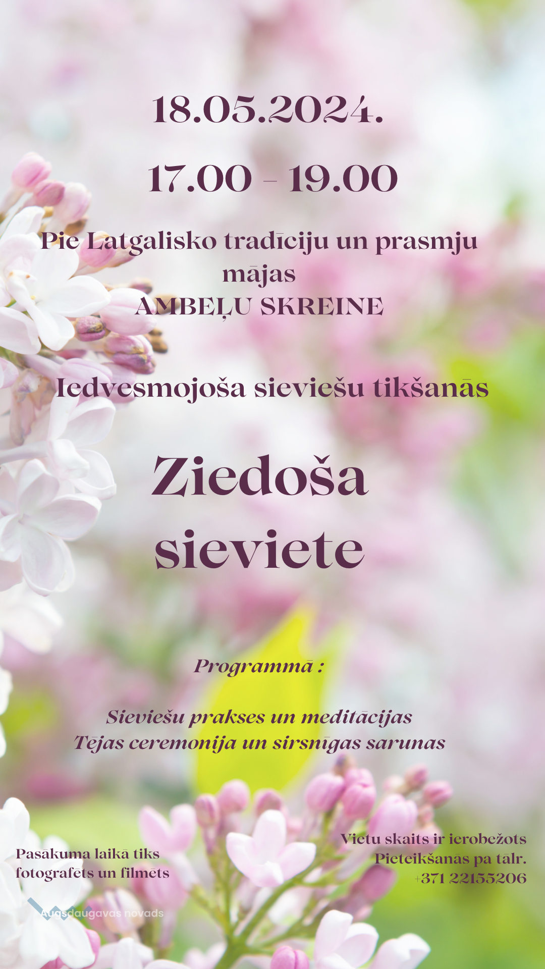 Pieteikšanās pasākumam notiek līdz 17.05.2024. plkst. 17.00 pa tālruni 22155206 (Aleksandra). Minimālais dalībnieku skaits - 5 sievietes, pretējā gadījumā pasākums nenotiks, un par to būs paziņots dienu iepriekš.