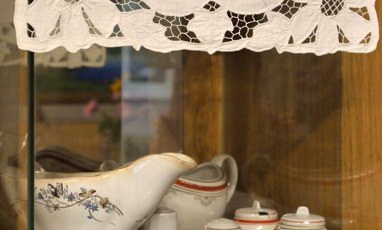 Regīna Tenisa izstādei sarūpējusi savas mammas un vecmammas darinātos rokdarbus, kurus visus šos gadus rūpīgi glabājusi. Reiz tie jau bija aplūkojami izstādē Līksnā. Kad Regīna uzzināja par Skrindu dzimtas muzeja aicinājumu, nolēma dāvāt savu pūru muzejam, lai saglabātu šos rokdarbus vēsturei un parādītu tos plašam cilvēku lokam. Regīna atzīst, ka tagad ar rokdarbiem nodarbojas viņas meita, kuras tamborētie taureņi rotā Līksnas pagasta parku.