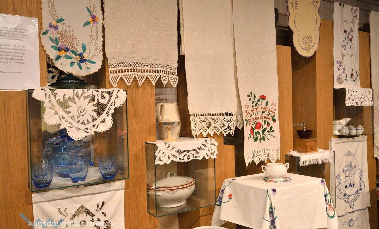 Darbus izstādei sarūpējušas Vaboles pagasta iedzīvotājas Broņislava Skuķe, Genovefa Žuka un Ženija Boitmane, kā arī Līksnas pagasta iedzīvotājas Regīna Tenisa, Silvija Voiņa un Elvīra Vorošena. Viņas tika aicinātas aplūkot jauno izstādi un saņēma nelielas pateicības veltes no muzeja direktores par atsaucību un dāsnajām veltēm muzeja krājumam.