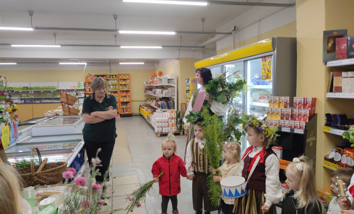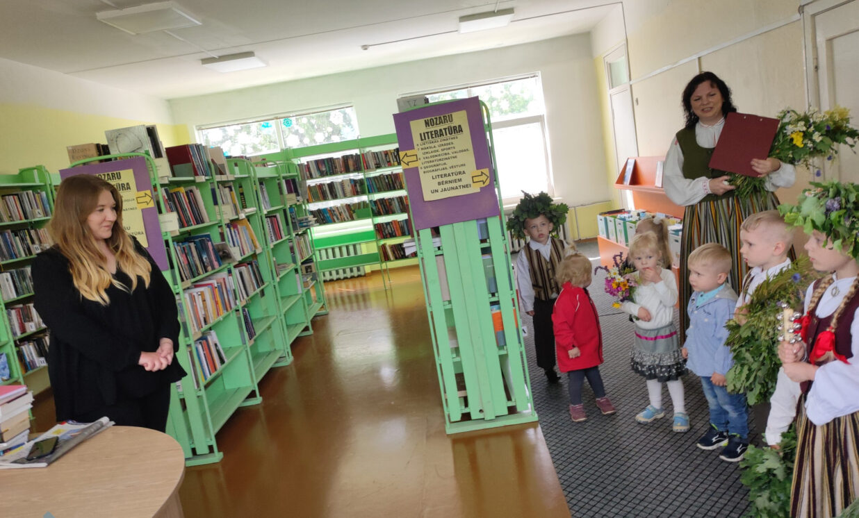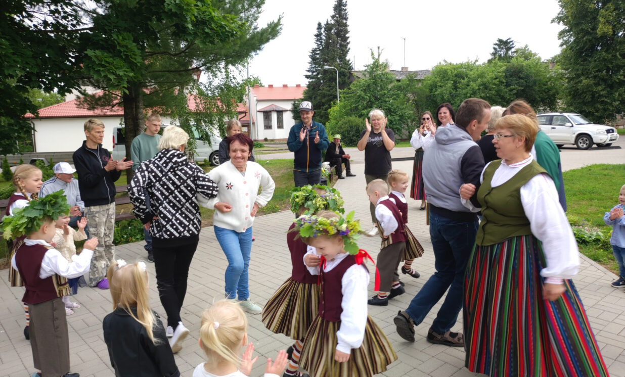 No mazajiem līgotājiem katra iestāde saņēma pašsacerētu aplīgošanas dziesmu un kuplu jāņuzāļu pušķi.