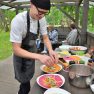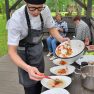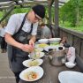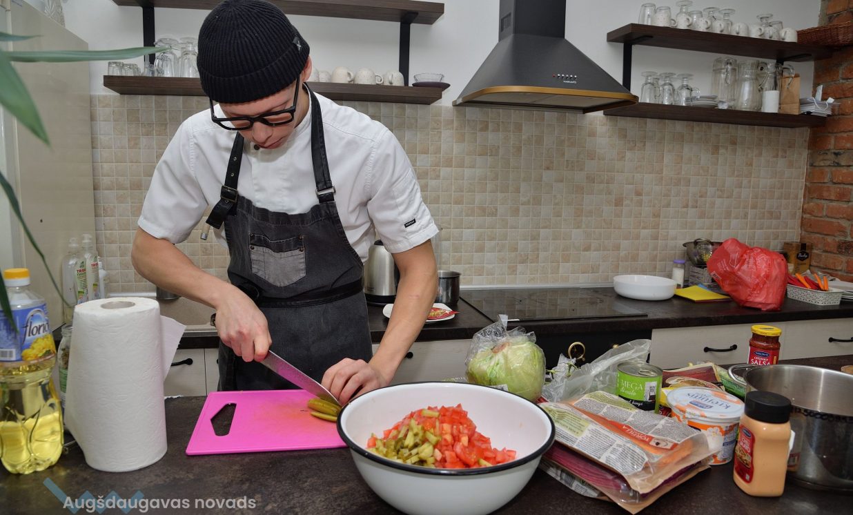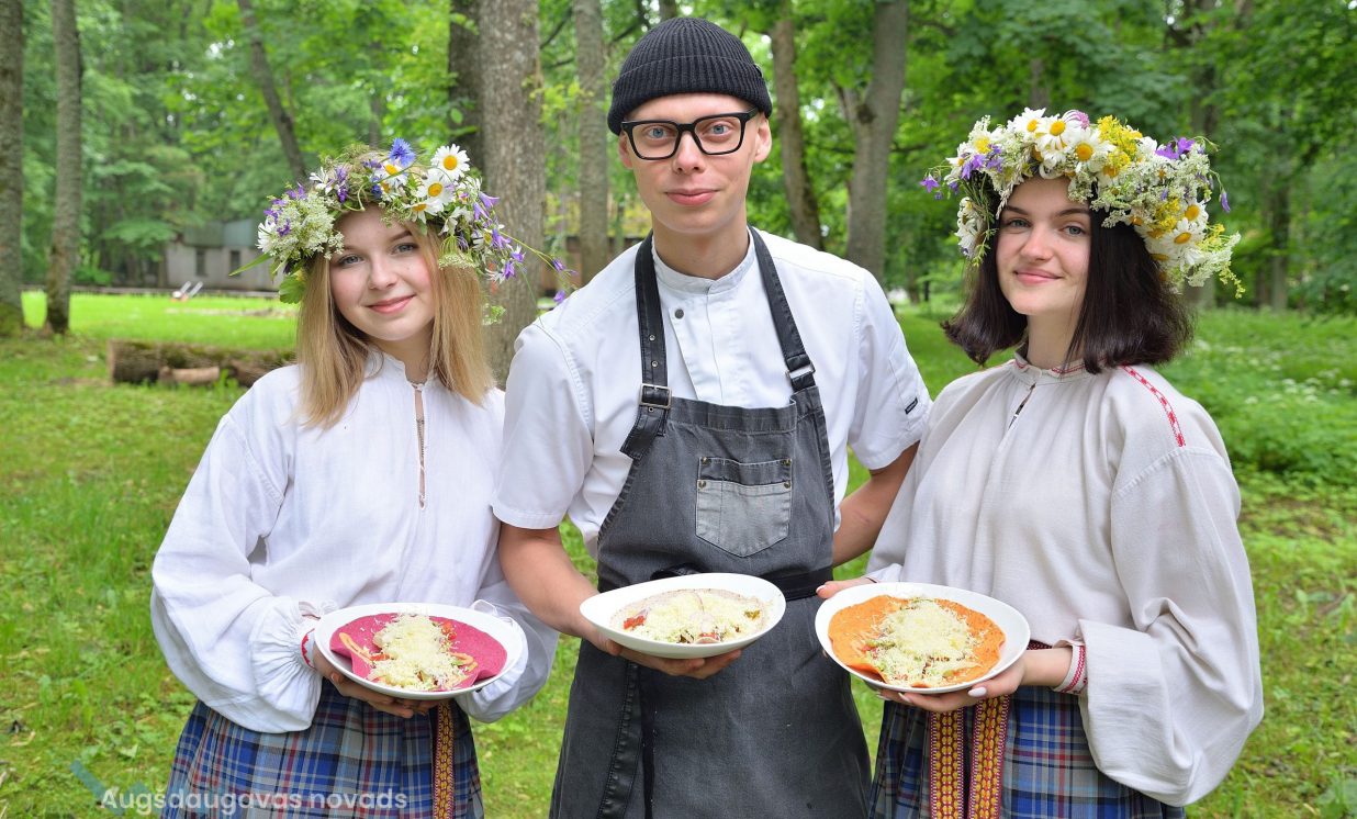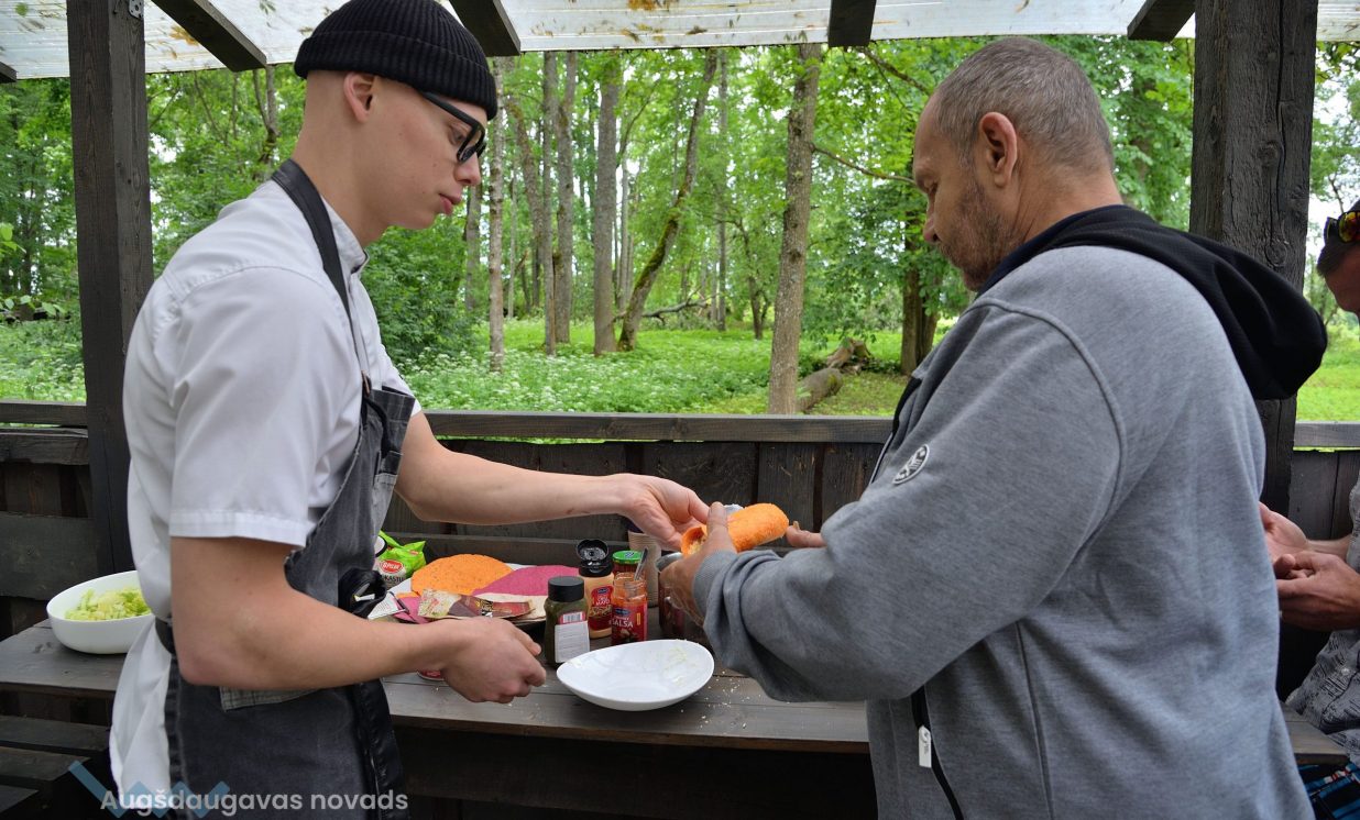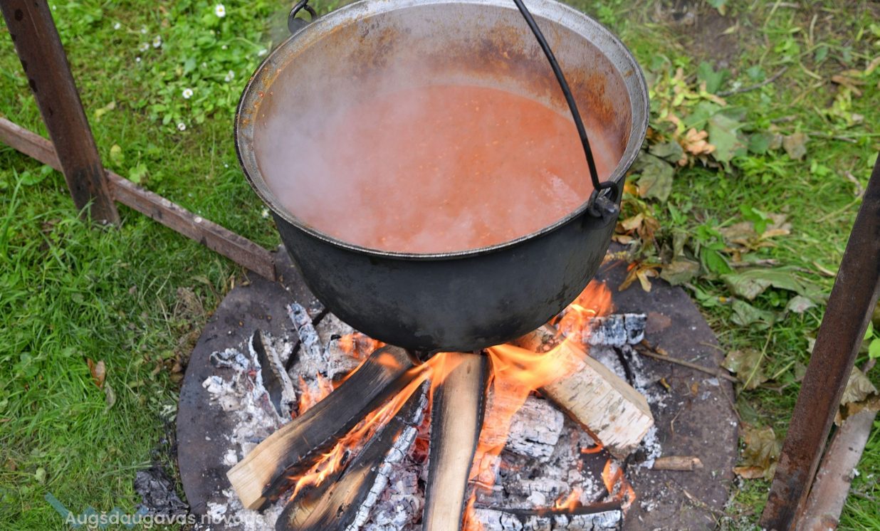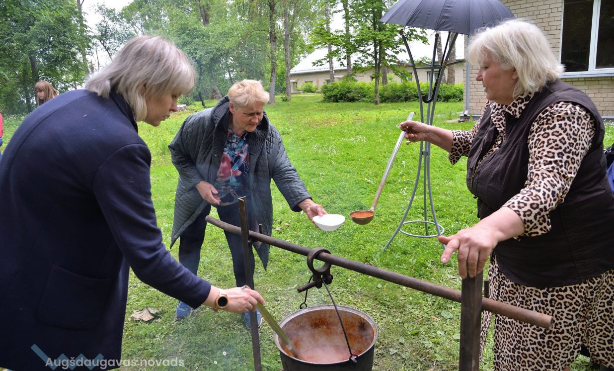 Pasākuma turpinājumā viesi tika aicināti uz Skrindu dzimtas muzeja kulinārā mantojuma telpu, kur rosījās profesionāls pavārs, kalupietis Haralds Saušs, gatavojot viesiem neparastu cienastu.