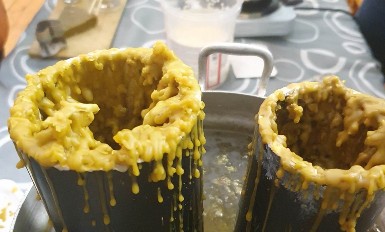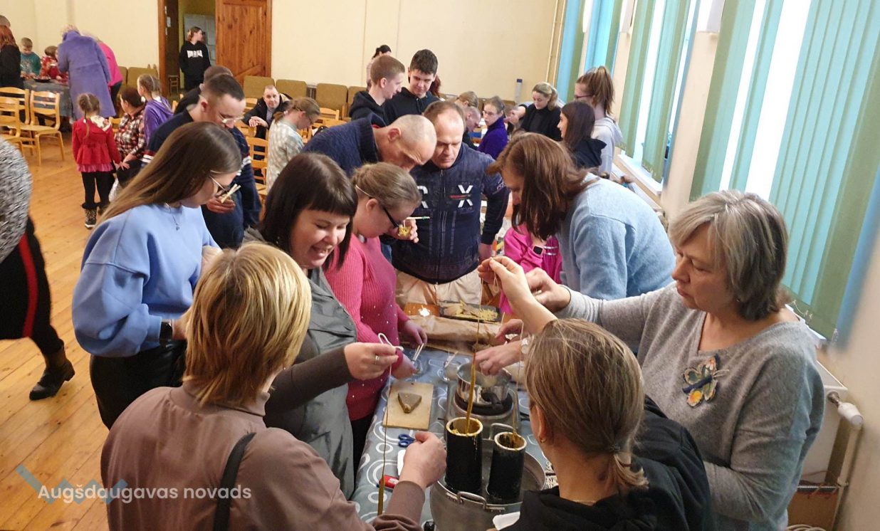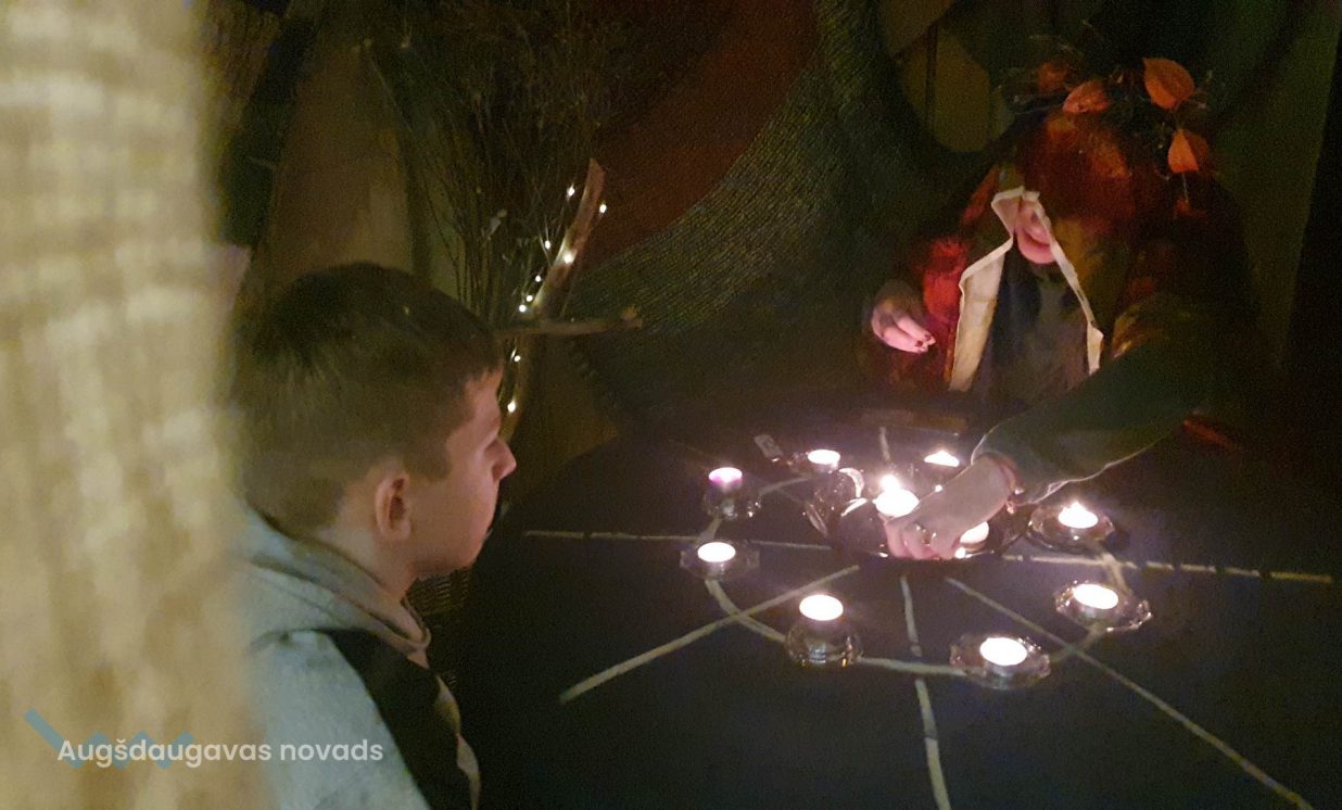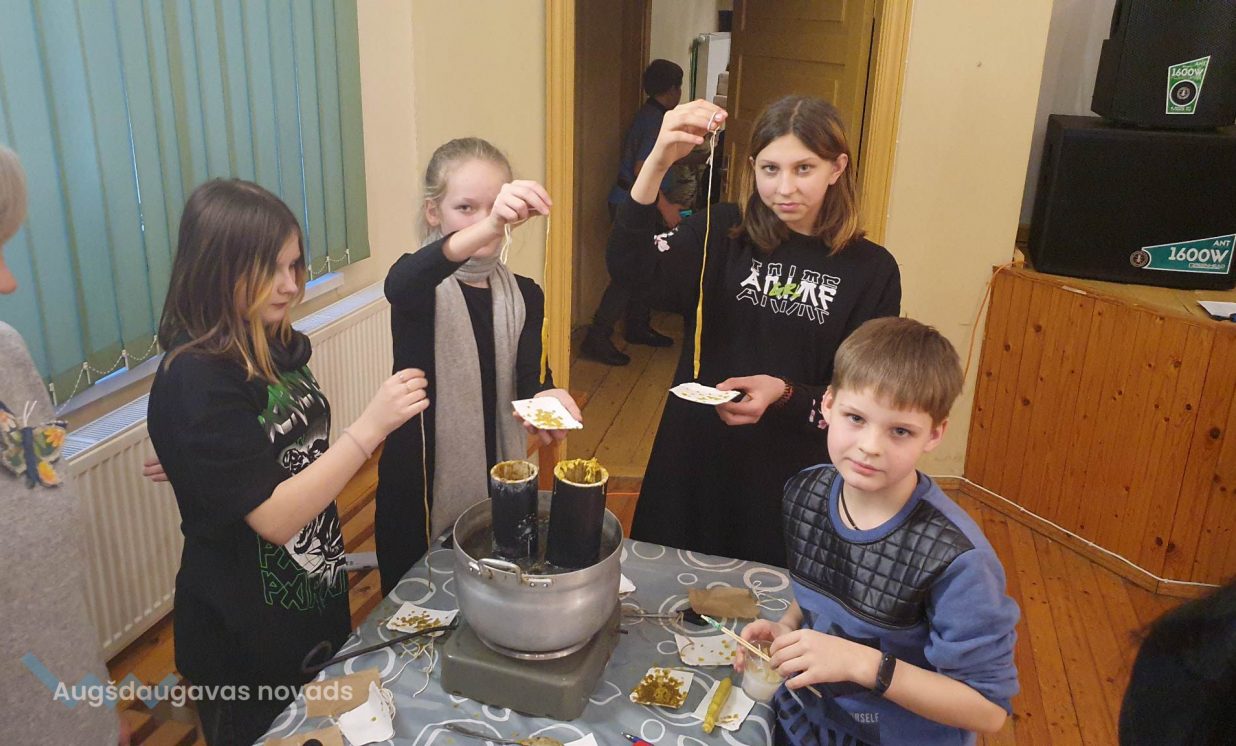 Otrā pasākuma daļa sākas ar sveču liešanu, jo tā ir galvenā aktivitāte Sveču dienā, kas nes maģisko spēku. Sveces “mērcējām” dabīgā bišu vaskā, kā arī lējām no parafīna, pievienojot klāt sausus ziedus un aromātiskās eļļas. Arī bija iespēja uztaisīt svecītes “Papjē mašē” tehnikā. Bet pie maģiskās burves izveidojās gara rinda, kura ar sveces palīdzību stāstīja, kas sagaidīs šajā gadā. Un nobeigumā visi cienājās ar saldumiem, tēju un tradicionālo debessmannu ar dzērvenēm, lai ir skaistums un sārti vaigi!