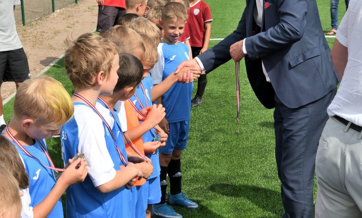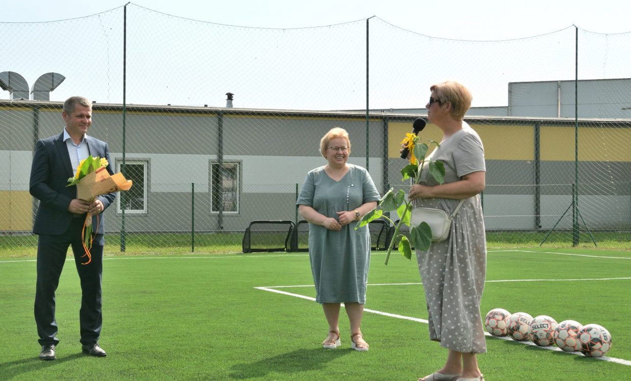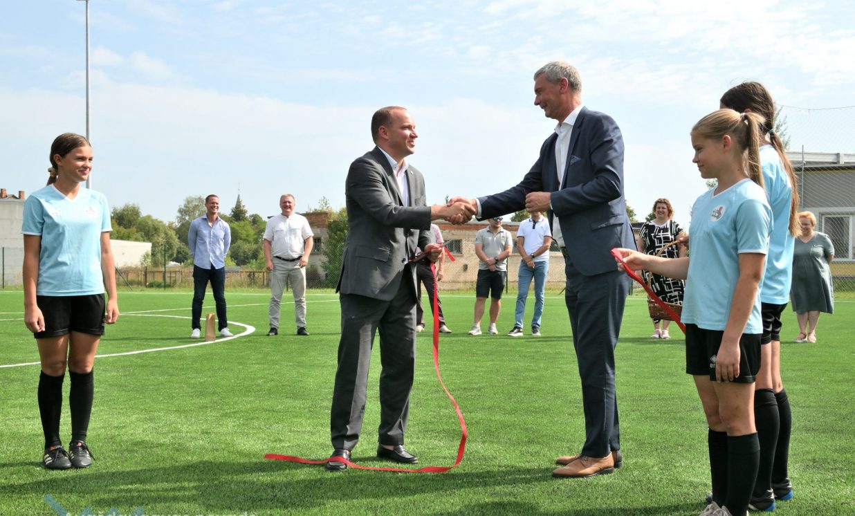 Ilūkstē pabeigti būvdarbi mākslīgā seguma futbola laukumā