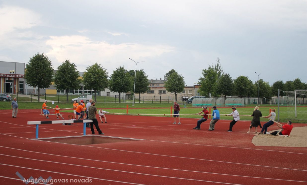 Sporta spēļu laikā norisinājās dažādas fiziskās aktivitātes – ikvienam bija iespēja piedalīties jogas iesildīšanās vingrojumos, stafetēs, šautriņu mešanā, riepas sviešanā, futbola bumbas sišanā vārtos, basketbola soda metienos utt.