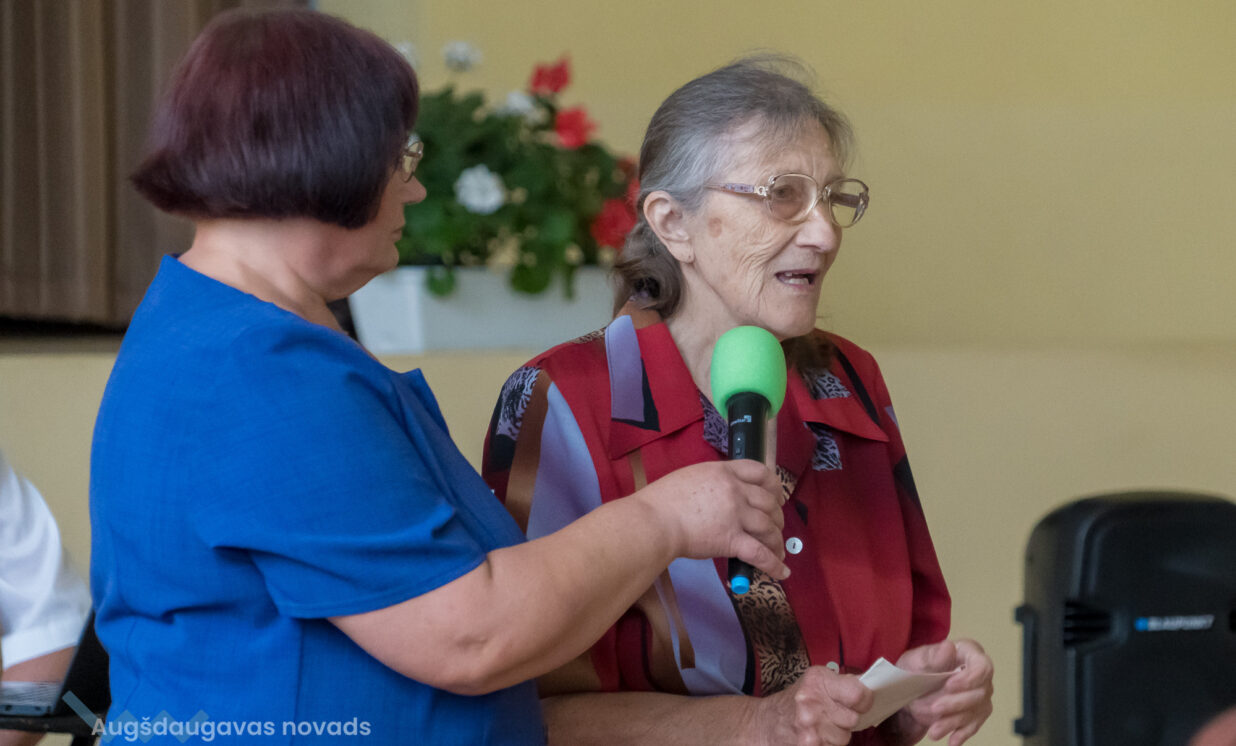 Augšdaugavas novada Sociālā dienesta vadītāja Anna Jegorova teic: “Mūsu novada lielākais dārgums ir cilvēks. Tāpat kā čehu tautas dziesmā ir vārdi dejo, dejo, pagriezies, pagriezies, tāpat arī jūs – dejojat, dziedat, jūs spēlējat, jūs runājat, jūs iepriecināt cilvēkus, kas to gaida. Es jums novēlu – dzīvojiet priecīgi, smaidiet, atbalstiet, runājiet, apmeklējiet radus un draugus, ieprieciniet viens otru. Lai jums stipra veselība, lai jūs ziediet un plaukstiet!”