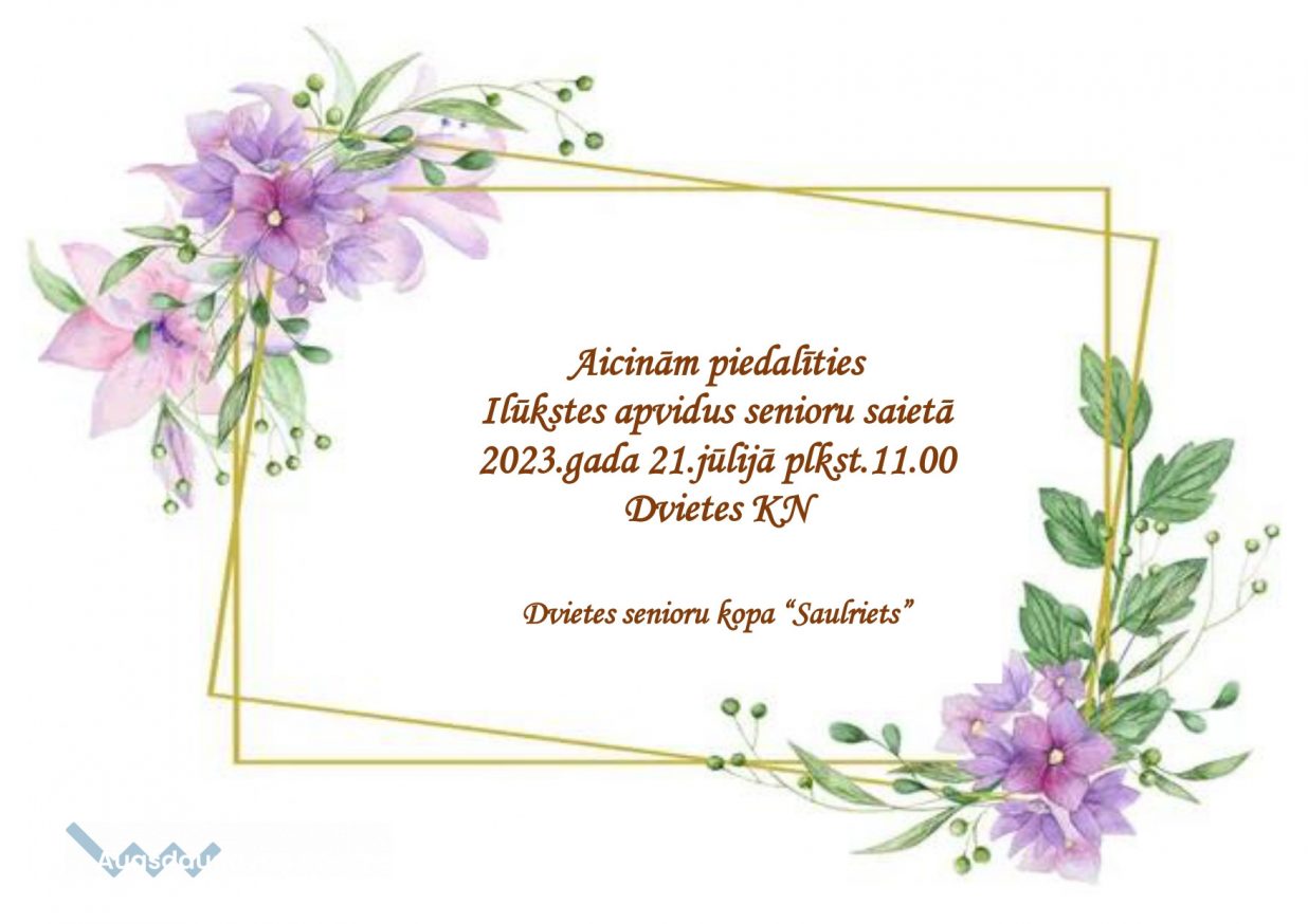 Aicinām piedalīties Ilūkstes apvidus senioru saietā 2023.gada 21.jūlijā 11.00, Dvietes kultūras namā!