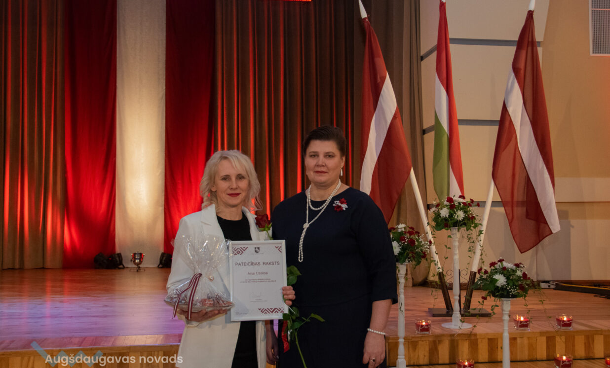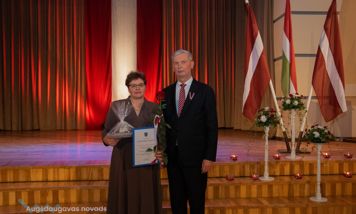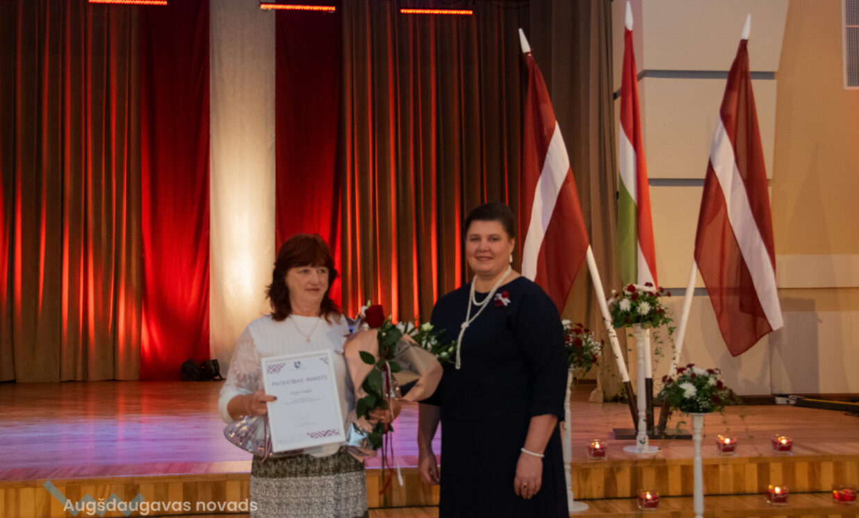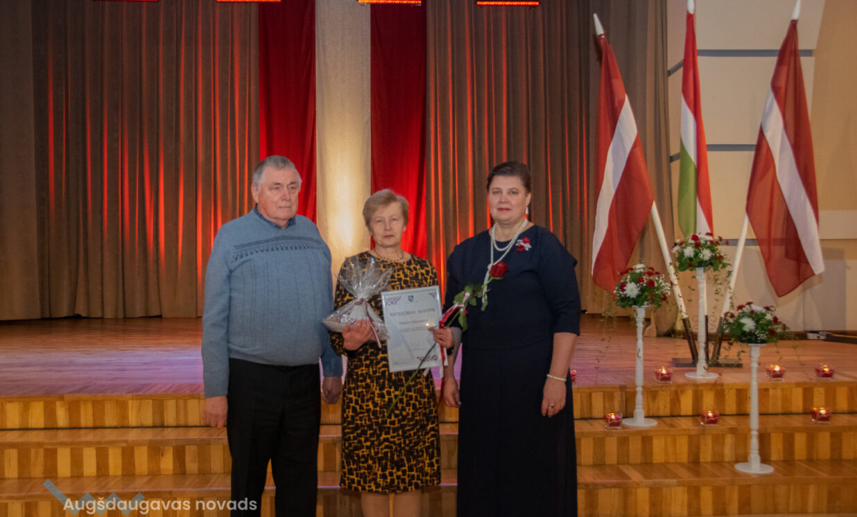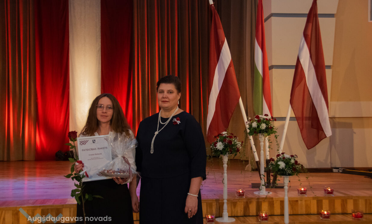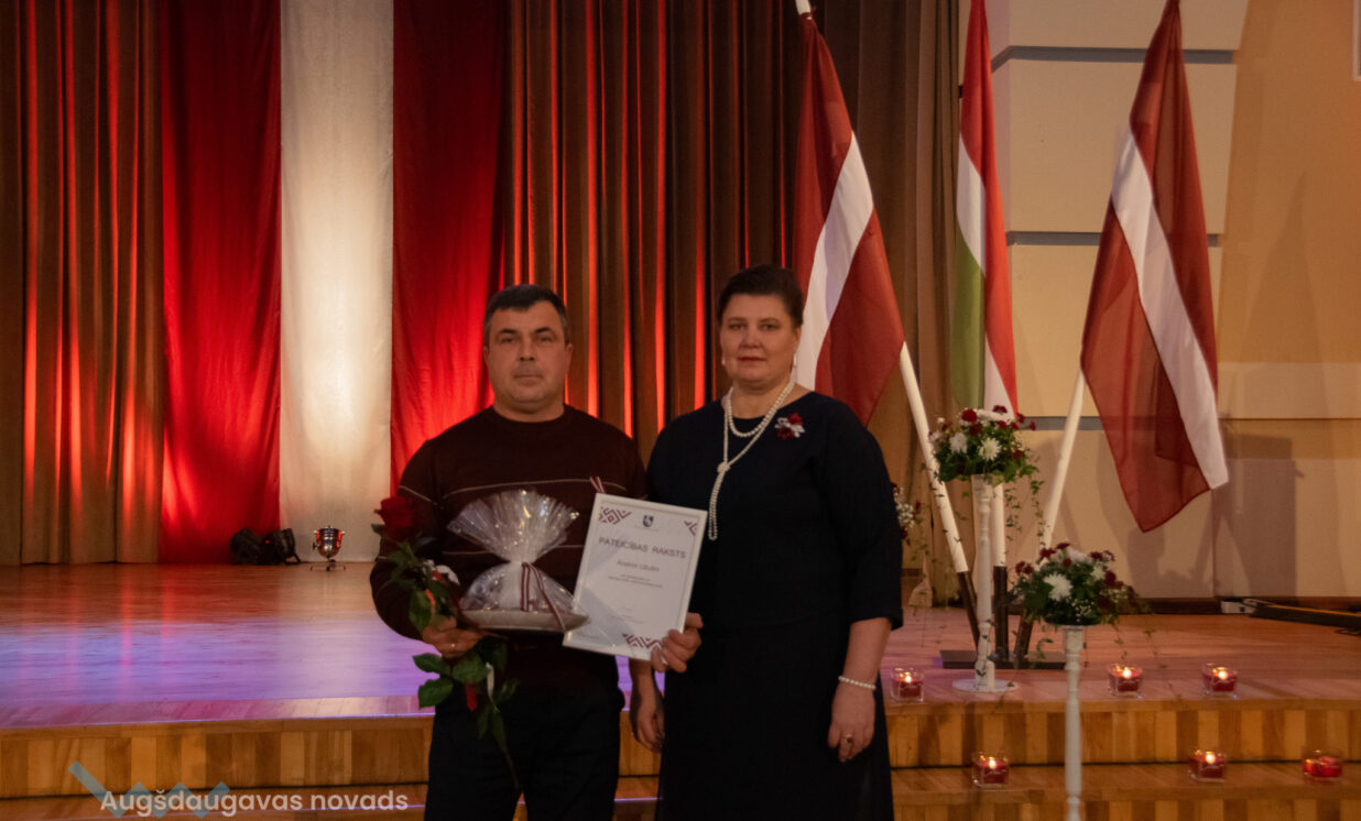 Ilūkstes apvienības pārvaldes vadītāja Ruta Buldure un Augšdaugavas novada pašvaldības priekšsēdētājs Vitālijs Aizbalts svinīgi pasniedza Pateicības rakstus Ilūkstes puses iedzīvotājiem, kuru darbs ir nozīmīgs ieguldījums iedzīvotāju dzīves kvalitātes uzlabošanā un pašvaldības attīstībā.