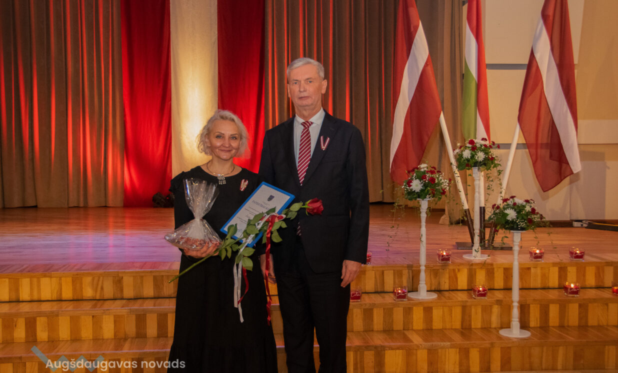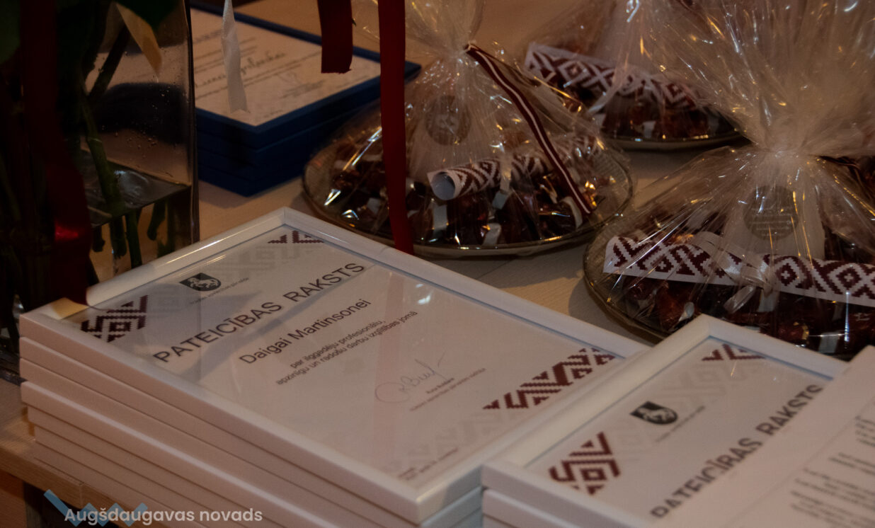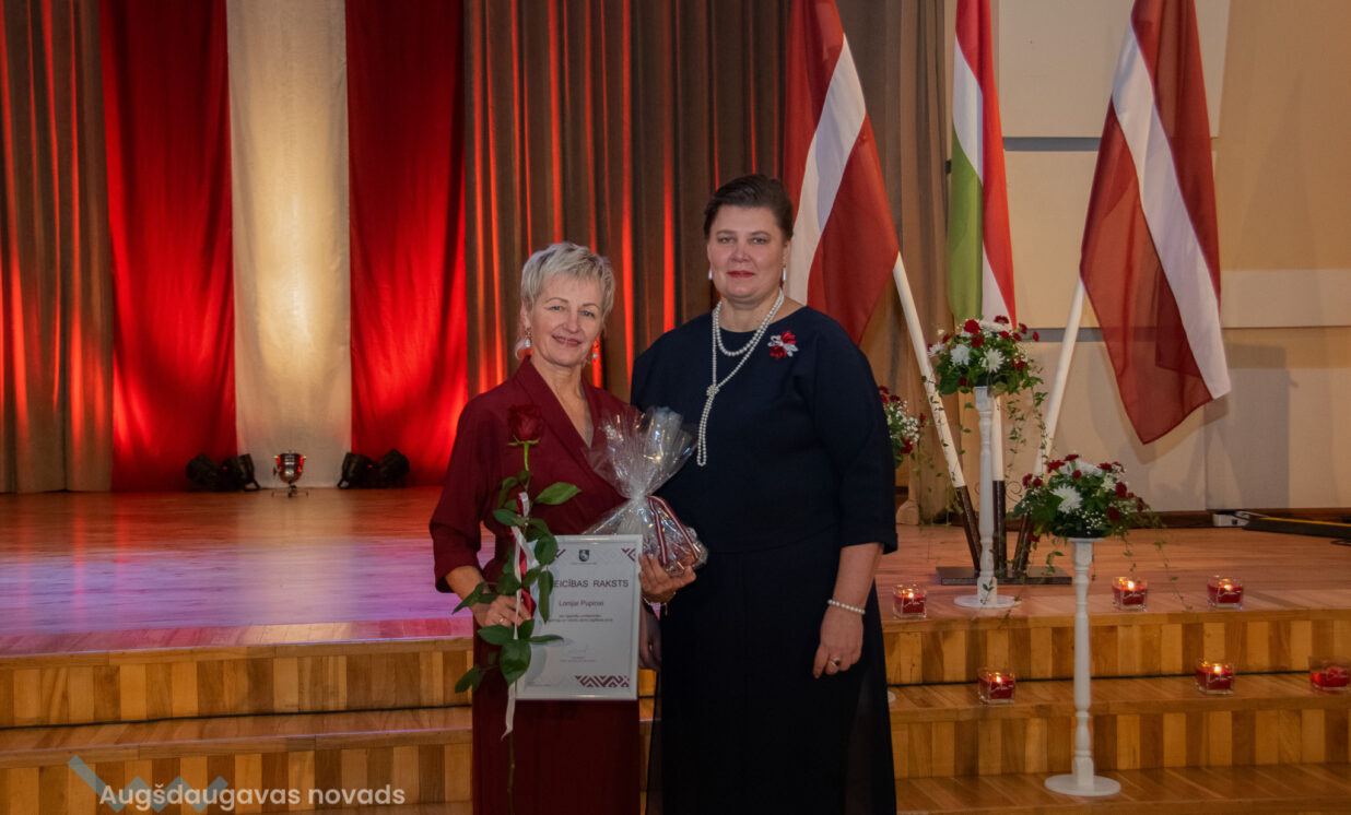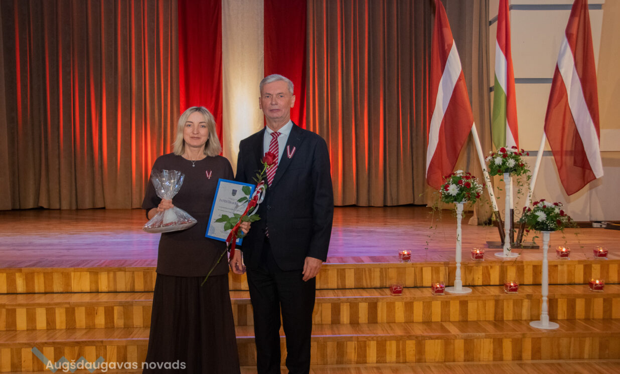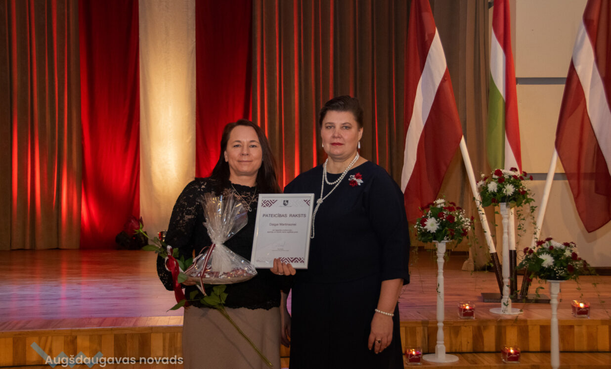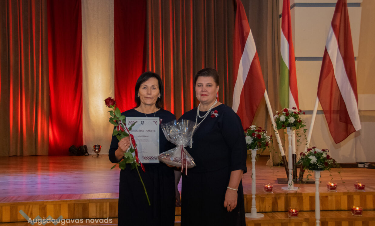 Ilūkstes apvienības pārvaldes vadītāja Ruta Buldure un Augšdaugavas novada pašvaldības priekšsēdētājs Vitālijs Aizbalts svinīgi pasniedza Pateicības rakstus Ilūkstes puses iedzīvotājiem, kuru darbs ir nozīmīgs ieguldījums iedzīvotāju dzīves kvalitātes uzlabošanā un pašvaldības attīstībā.