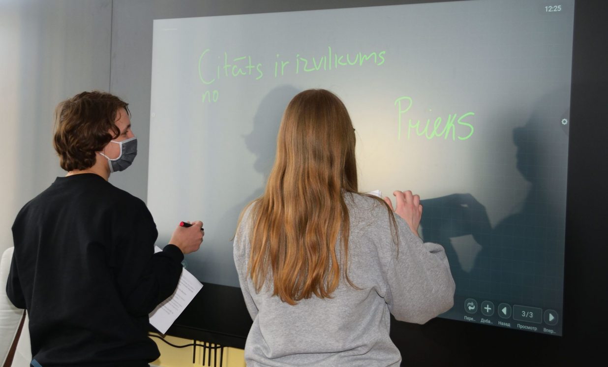 Ar šādām tāfelēm ir ērti apgūt arī humanitāros priekšmetus. Latviešu valodas skolotāja Silvija Romaņenkova par lielisku ieguvumu uzskata iespēju vairākkārt izmantot iepriekš sagatavotu mācību materiālu, atliek vien ieslēgt tāfeli. Turklāt tā ļauj vienlaikus pieslēgties arī dažādām mācību platformām online, ka to pieprasa mūsdienu kompetenču pieeja.