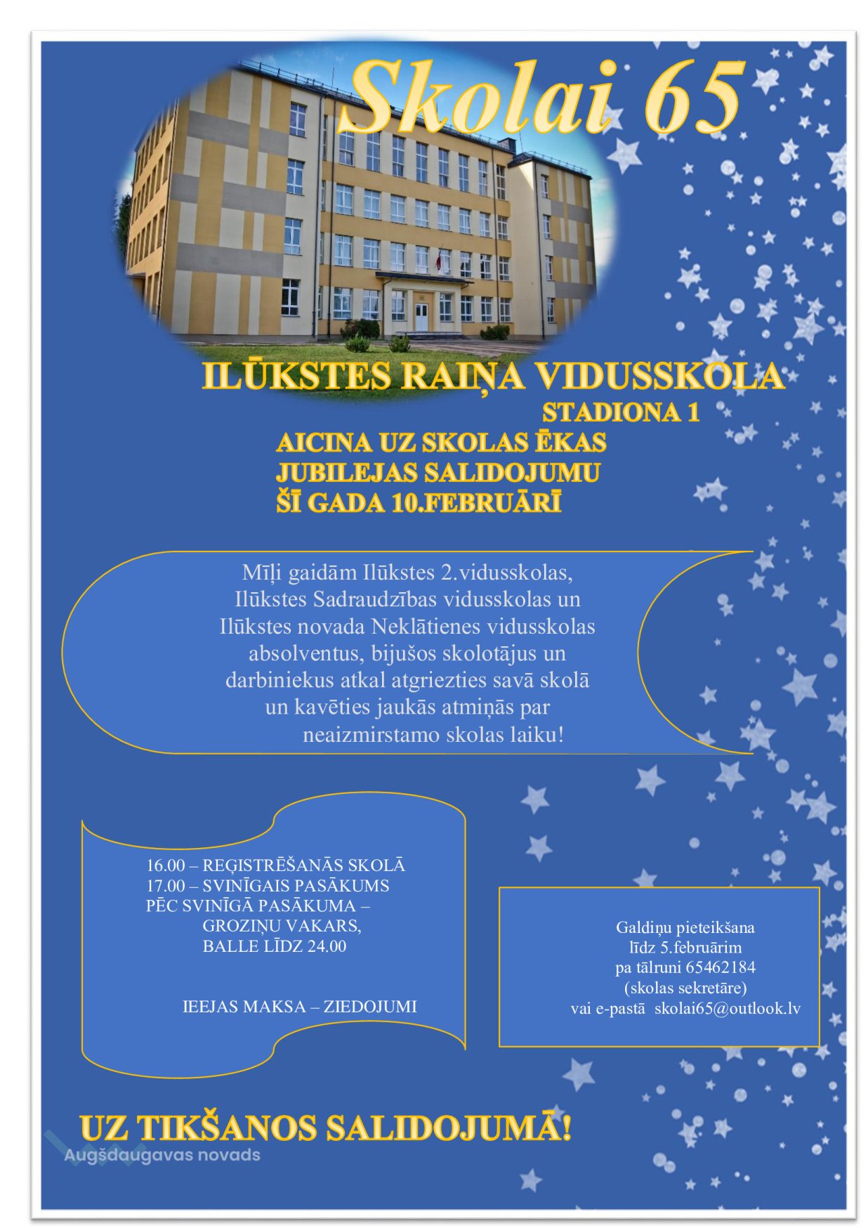 Ilūkstes Raiņa vidusskola aicina uz 65 gadu jubileju