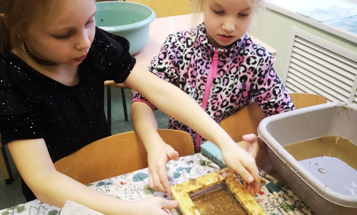 Ilūkstes Raiņa vidusskolas skolēni veido papīru no piepes