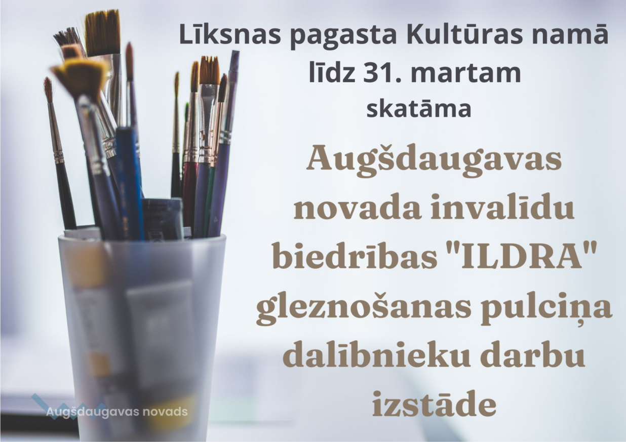Aicinām līdz 31. martam Līksnas pagasta kultūras namā apskatīt Augšdaugavas novada invalīdu biedrības “Ildra” gleznošanas pulciņa dalībnieku darbu izstādi.
