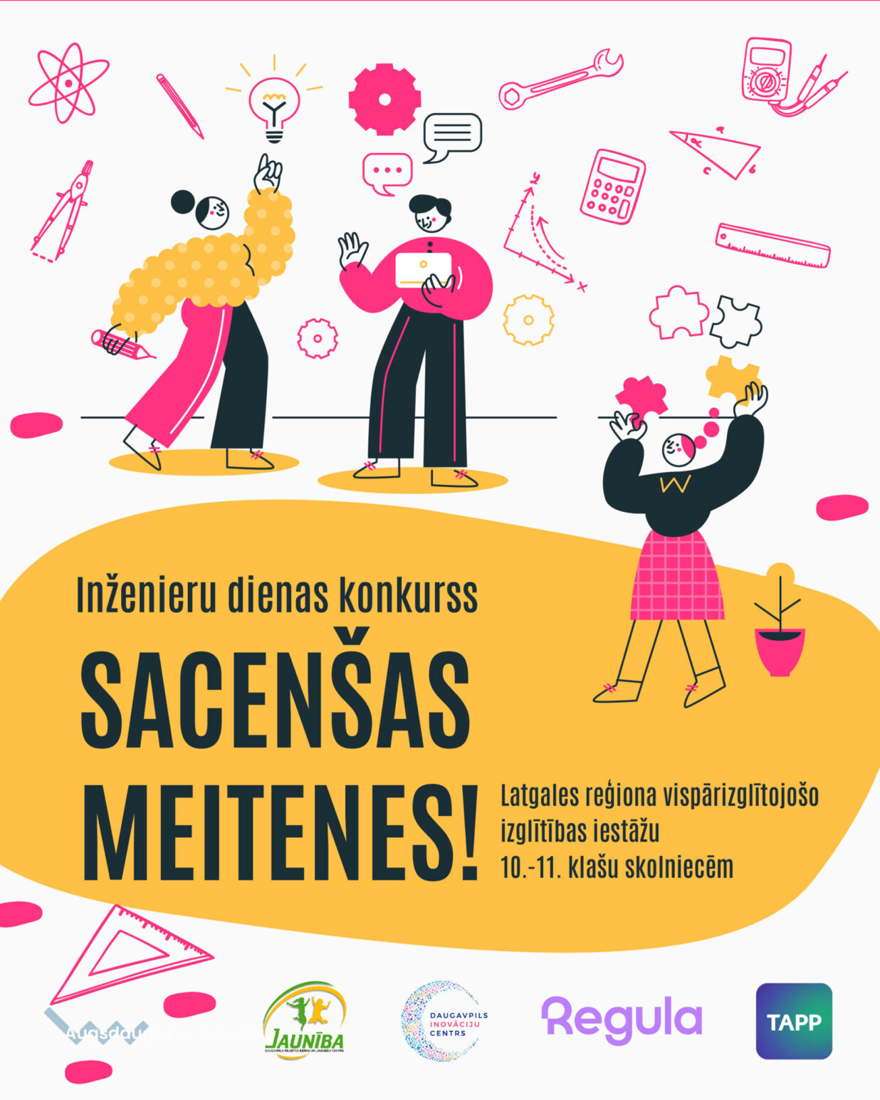 Inženieru dienas reģionālo konkursu rīko Daugavpils pilsētas Bērnu un jauniešu centrs “Jaunība” sadarbībā ar SIA “Regula Baltija” un SIA “TAPP”.