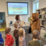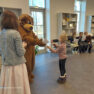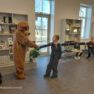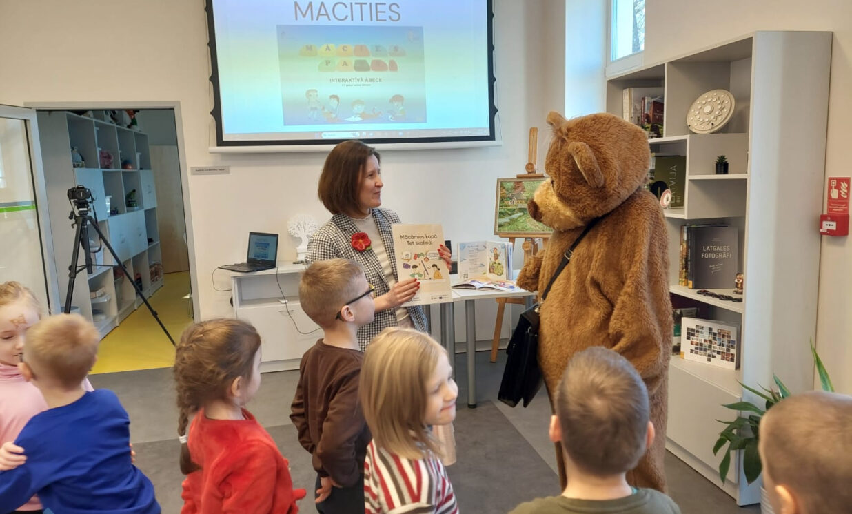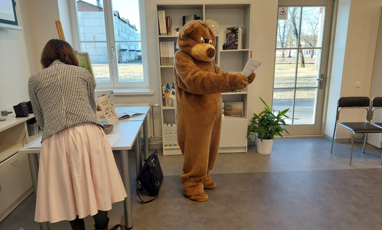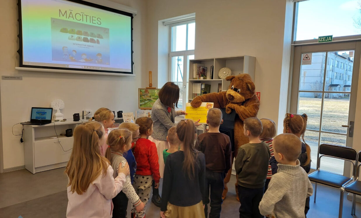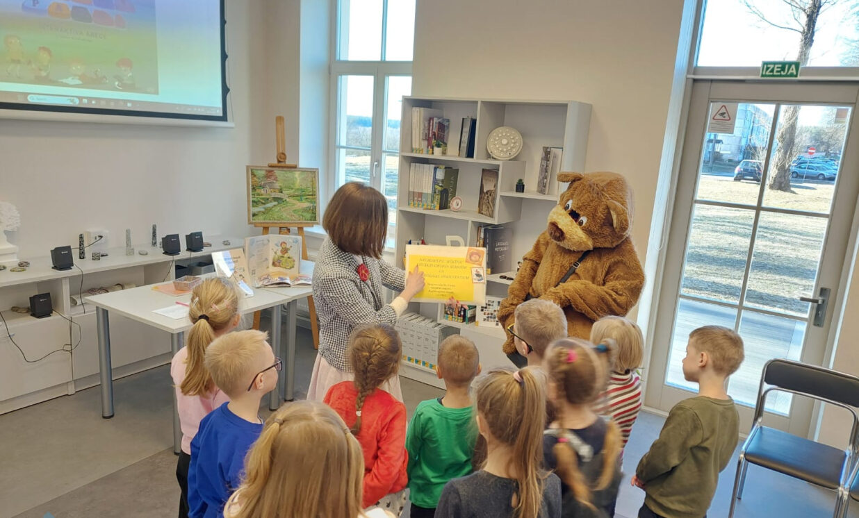 Izlaidums pagāja pārsteigumu un dāvanu pilns, jo uz Naujenes bibliotēku apsveikt absolventus atnāca... Lācis Naujēns! Izlīdis no ziemas migas viņš atnesa apsveikumu no sava drauga Ričija Rū - lielajā vēstulē bija diplomi bērniem un metodiskais materiāls skolotājām!
