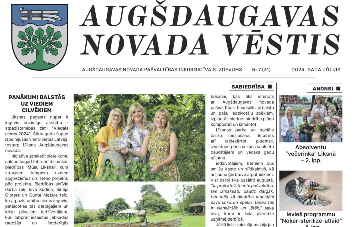 Iznācis "Augšdaugavas Novada Vēstis" jūlija numurs. Šajā numurā lasiet: