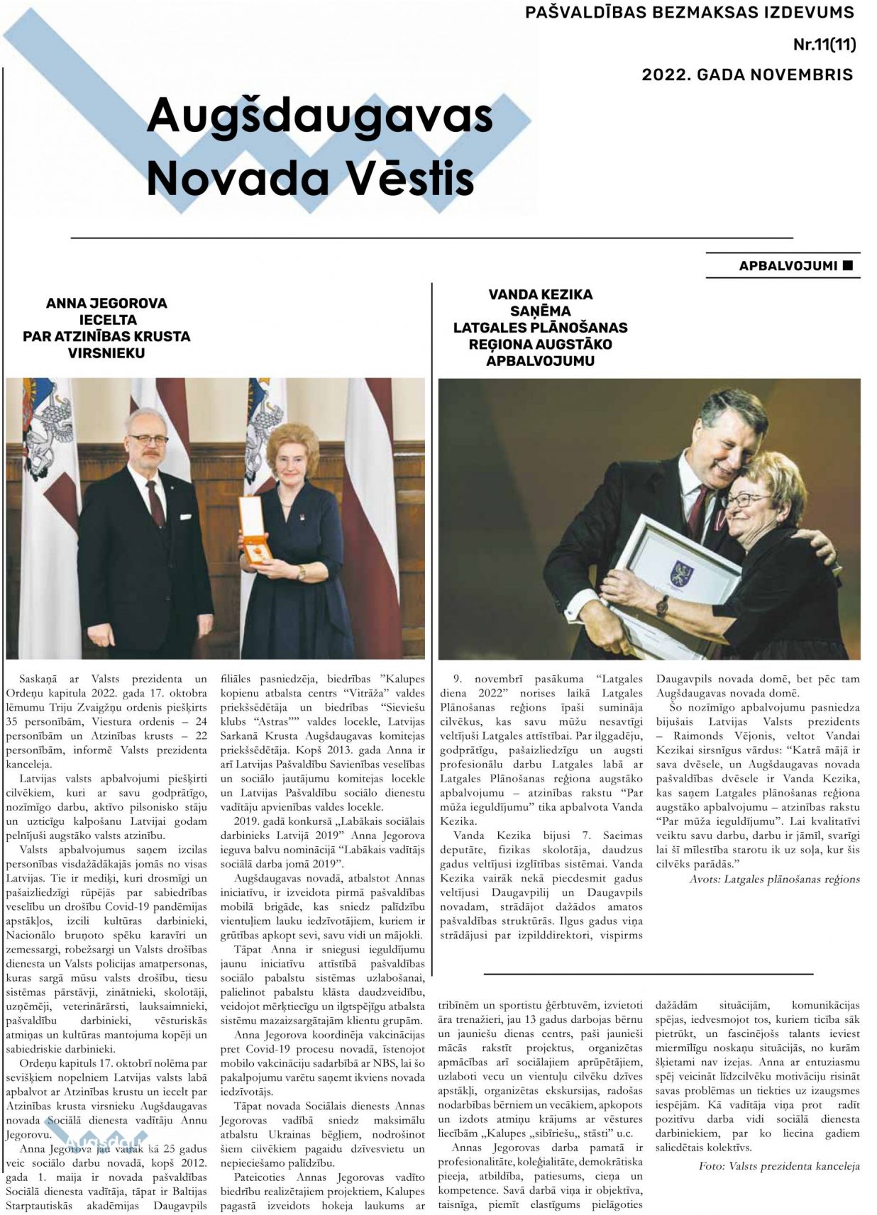 Iznācis “Augšdaugavas Novada Vēstis” novembra numurs