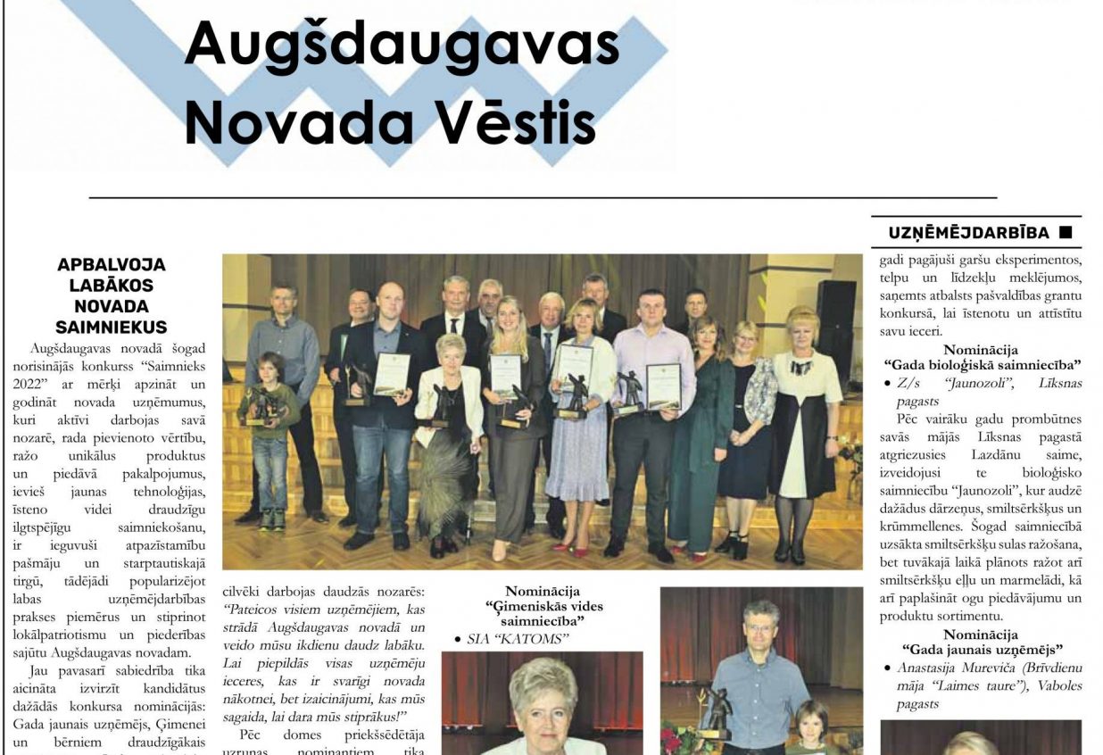 - Apbalvoja labākos novada saimniekus;