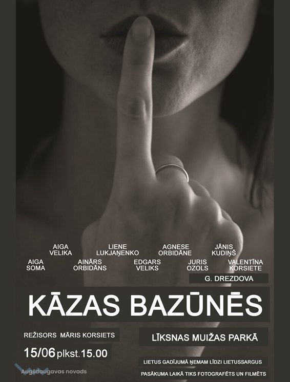 Izrāde “KĀZAS BAZŪNĒS” Līksnā14.06.2019AKTUĀLI 15. jūnijā plkst. 15.00 Līksnas Muižas parkā pirmizrādi piedzīvos Līksnas pagasta kultūras nama amateirteātra "Maskas" G.Drezova izrāde "KĀZAS BAZŪNĒS" (rež. M. Korsiets).
