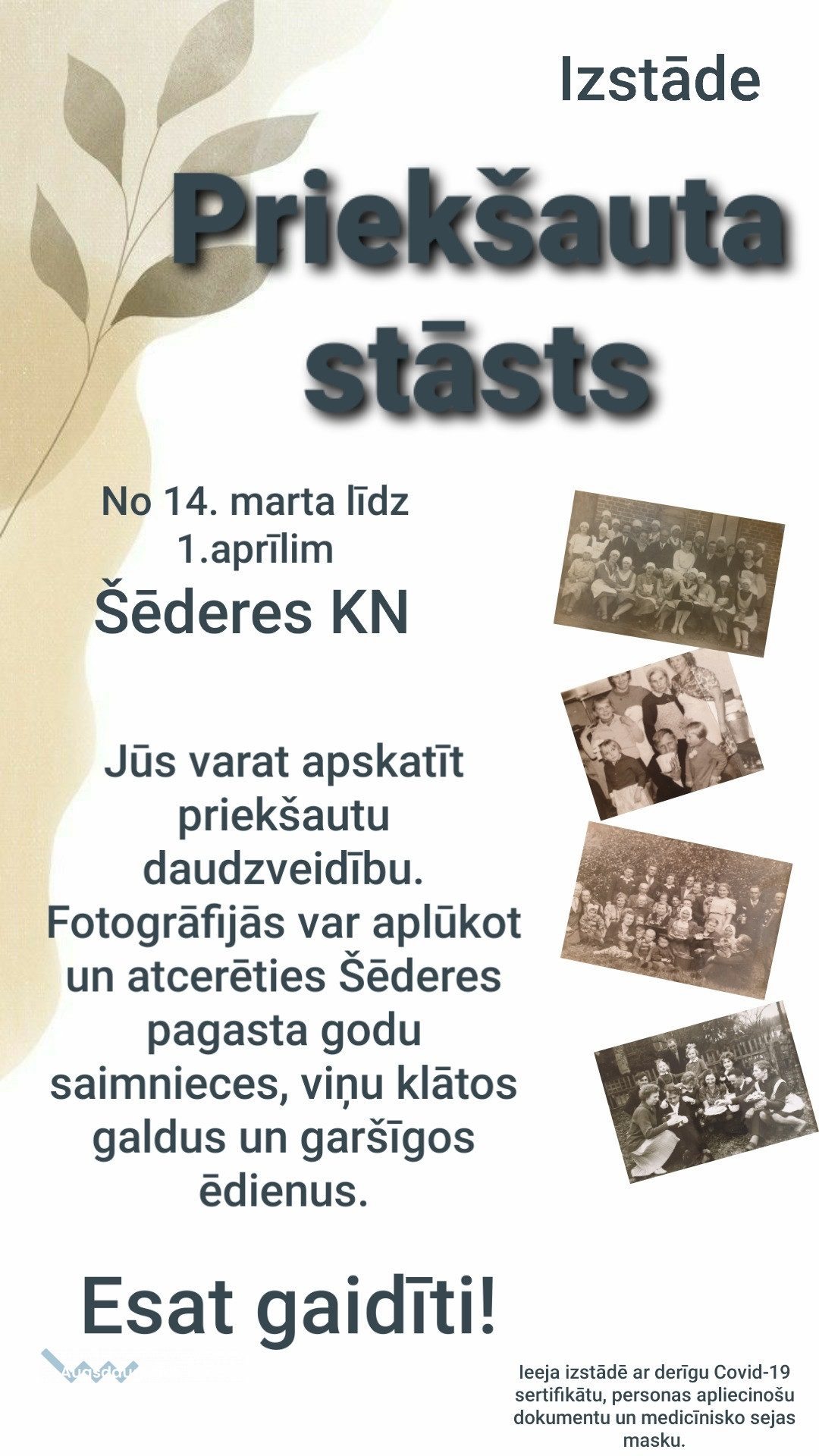 Apmeklēt izstādi var ar derīgu Covid-19 sertifikātu, personu apliecinošu dokumentu un medicīnisko sejas masku.
