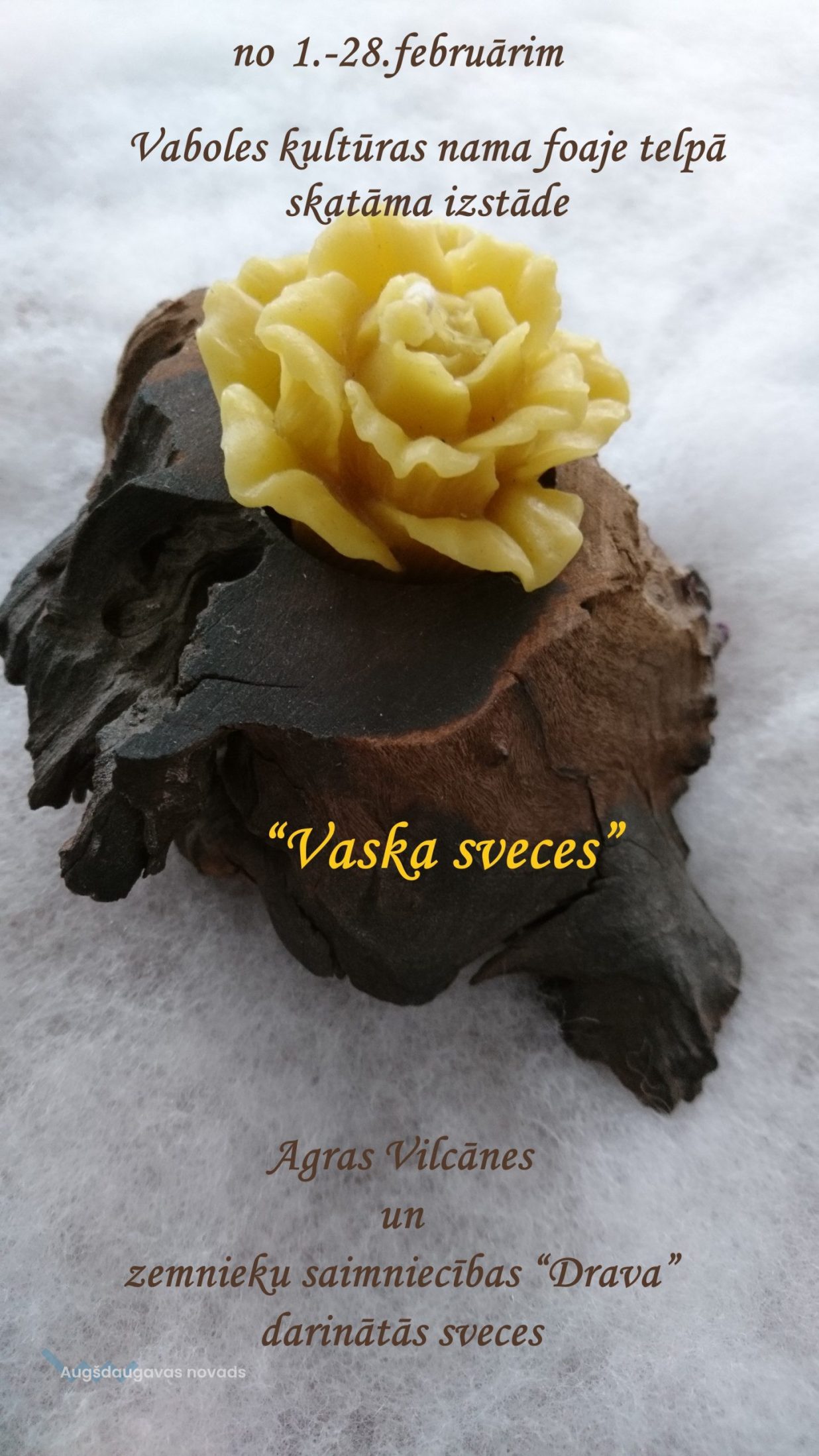 Vaboles kultūras namā visu februāra mēnesi būs skatāma izstāde “Vaska sveces”. Izstādē skatāmas sešdesmit dažādas sveces, ko darinājusi Agra Vilcāne un Kalupes pagasta zemnieku saimniecība “Drava”.