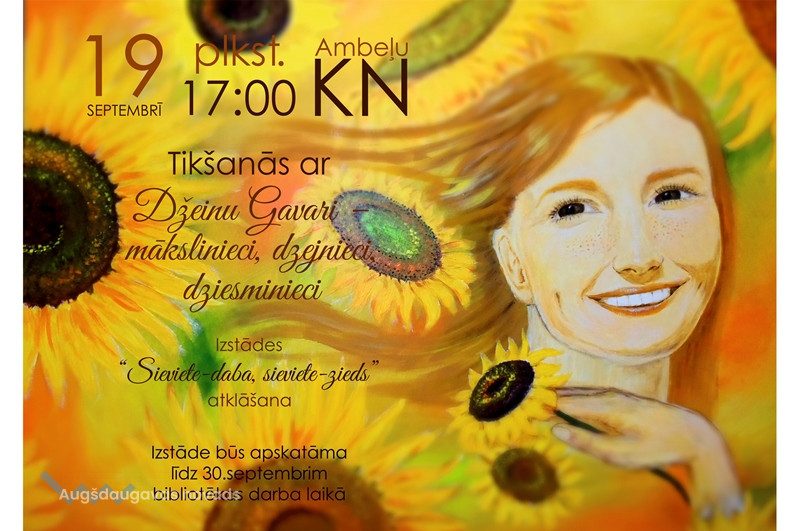 Izstādes “Sieviete – daba, sieviete – zieds” atklāšana13.09.2017AKTUĀLI Uzmanību! 19.septembrī Ambeļu KN paredzētā tikšanās ar mākslinieci Džeinu Gavari tiek pārcelta uz 26.09. plkst. 17.00. Atvainojamies par sagādātajām neērtībām.