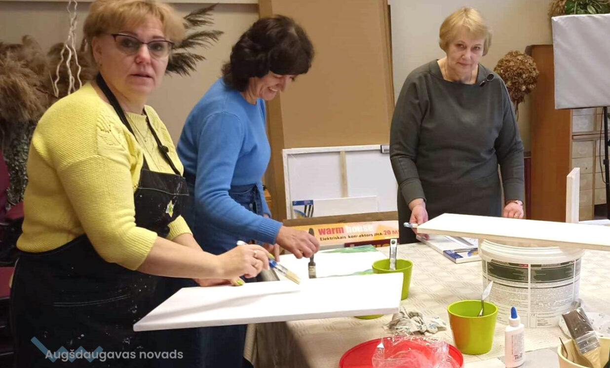 Vairāku gadu garumā interešu kluba darbības laikā ir iekrājusies diezgan vērienīga rokdarbu materiālu bāze – krāsas, audumi, audekli utt. Tas viss tiek nodrošināts kluba dalībniekiem bez maksas. Šajā sezonā mēs izmēģinājām savus spēkus reljefa gleznu veidošanā. Ar šiem materiāliem ir viegli strādāt, taču rezultāts vienmēr ir pārsteidzošs. Tiek iegūtas apjomīgas reljefa gleznas, kuras var arī nokrāsot vai arī atstāt monohromās krāsās. Vienmēr ir interesanti strādāt ar dabīgiem materiāliem. No vienkāršām lapām, zāles un zariem var izveidot apbrīnojamas gleznas. Pateicoties neparastu materiālu savienošanai un interesantai darba tehnikai, rodas efektīgi un īpatnēji darbi – dzīvnieku figūras no sausās oāzes un dekoratīvā apmetuma, dārza rotājumi no parasta cementa.