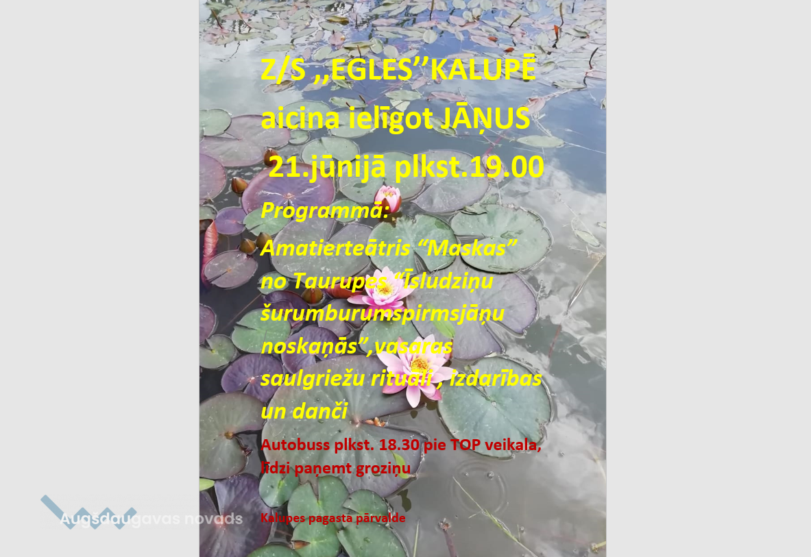 Zemnieku saimniecība “Egles” Kalupē, saimnieki Elvīra un Valentīns, ielūdz ielīgot Jāņus 21. jūnijā plkst. 19.00.