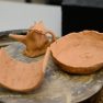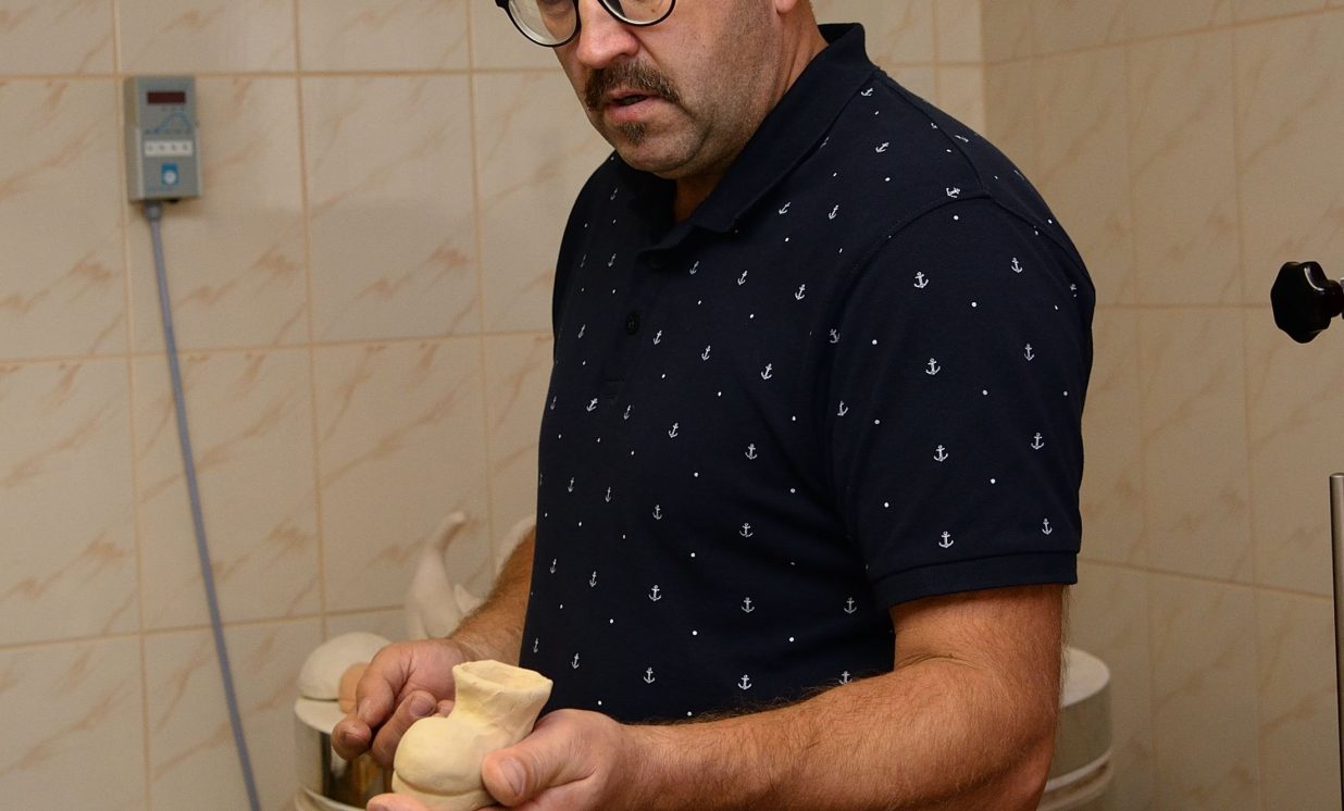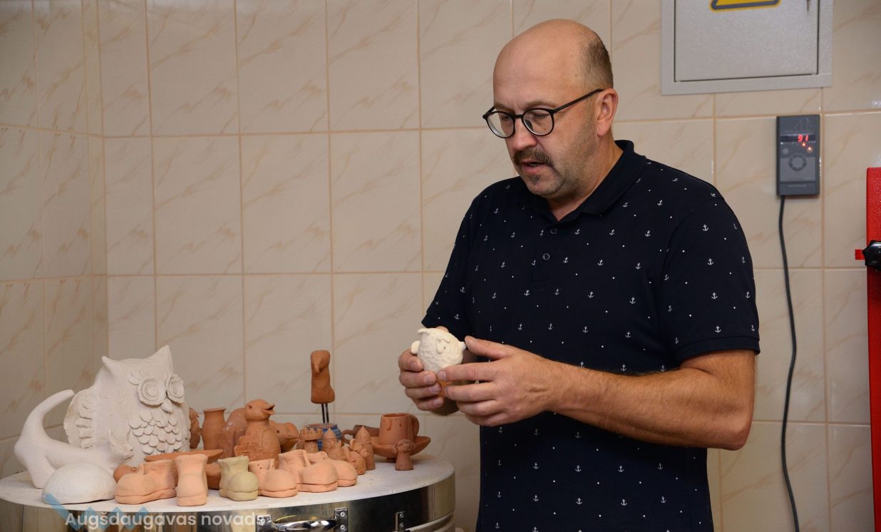 Keramiķis Valdis Grebežs stāsta, ka tūlīt jau būs gatava kārtējā darbu porcija, kuras apdedzināšanai bija nepieciešamas aptuveni četras stundas un 800 grādi karstuma.